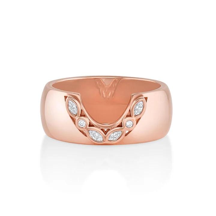 Curved Wedding Band, 14k Gold Cigar Wedding Band, U Shaped Ring, Bezel Diamond Unique Band, Unique 8mm Wide Cut Out Design Women's Thick Wedding Band Chevron Ring
