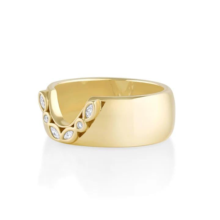 -->Thick Band Ring, Pave Stack Ring, U-Shaped Ring, Chevron Ring, Bridesmaid Gift, Fiancée Gift, crown statement ring, curved wedding band, contour ring ladies, bold wedding band, vintage gold ring, 14k Solid Gold, Cigar Contour Band
