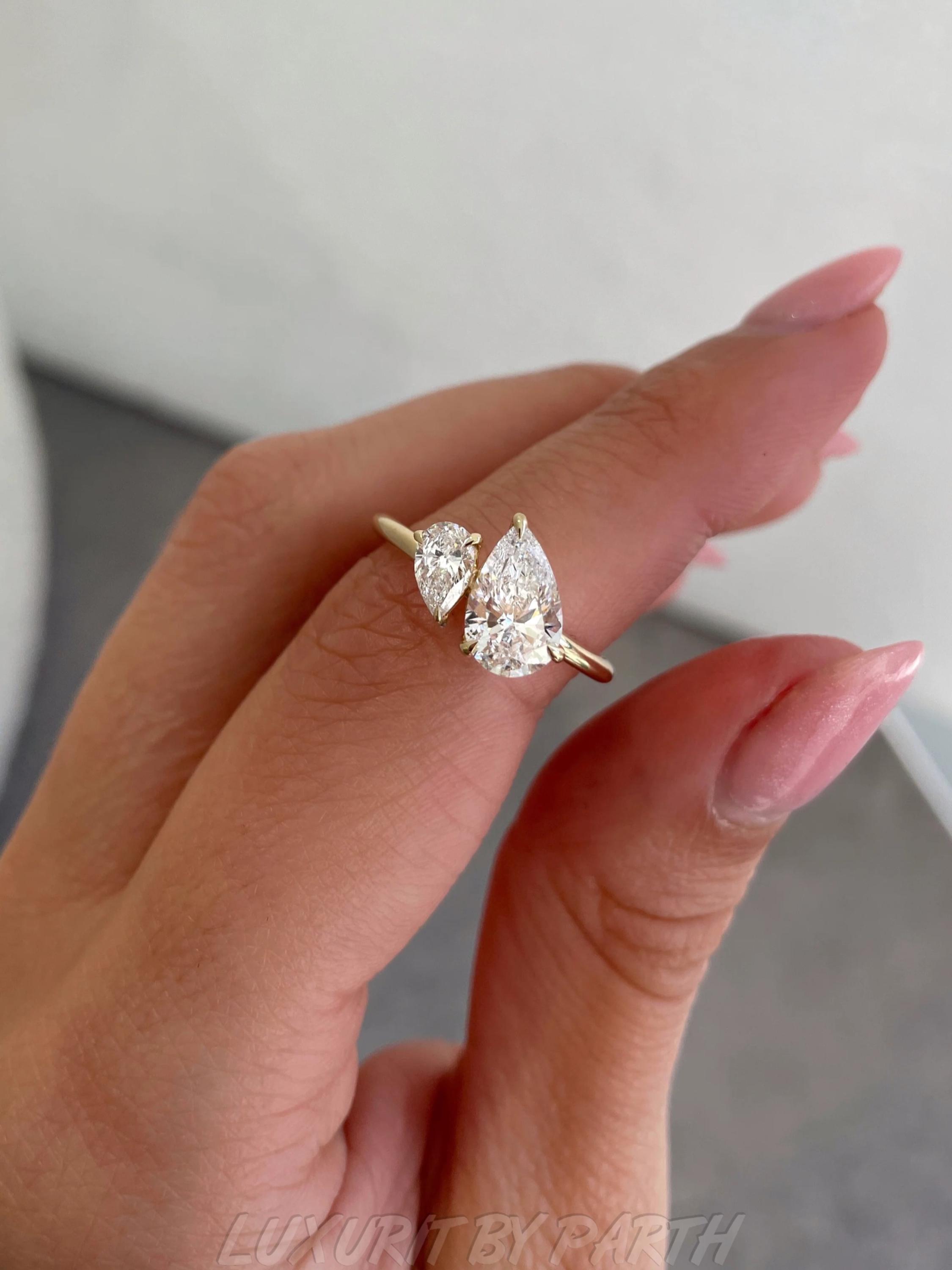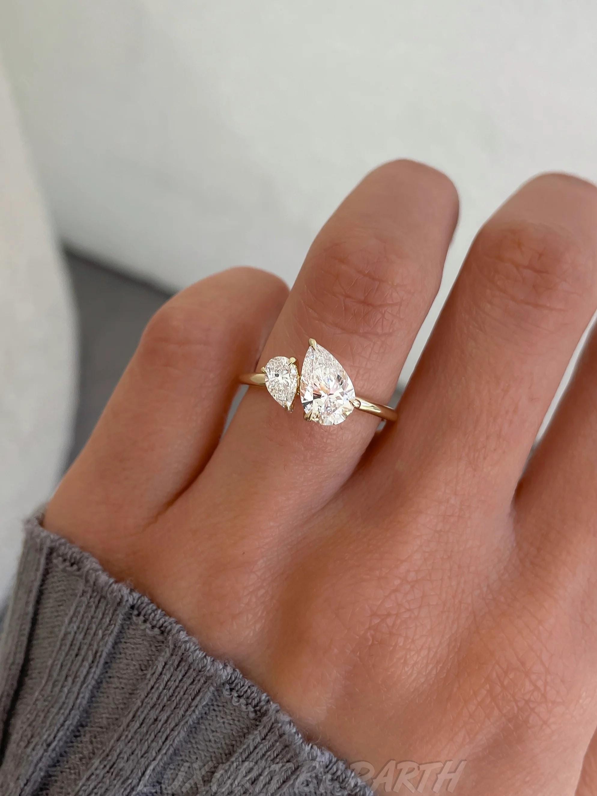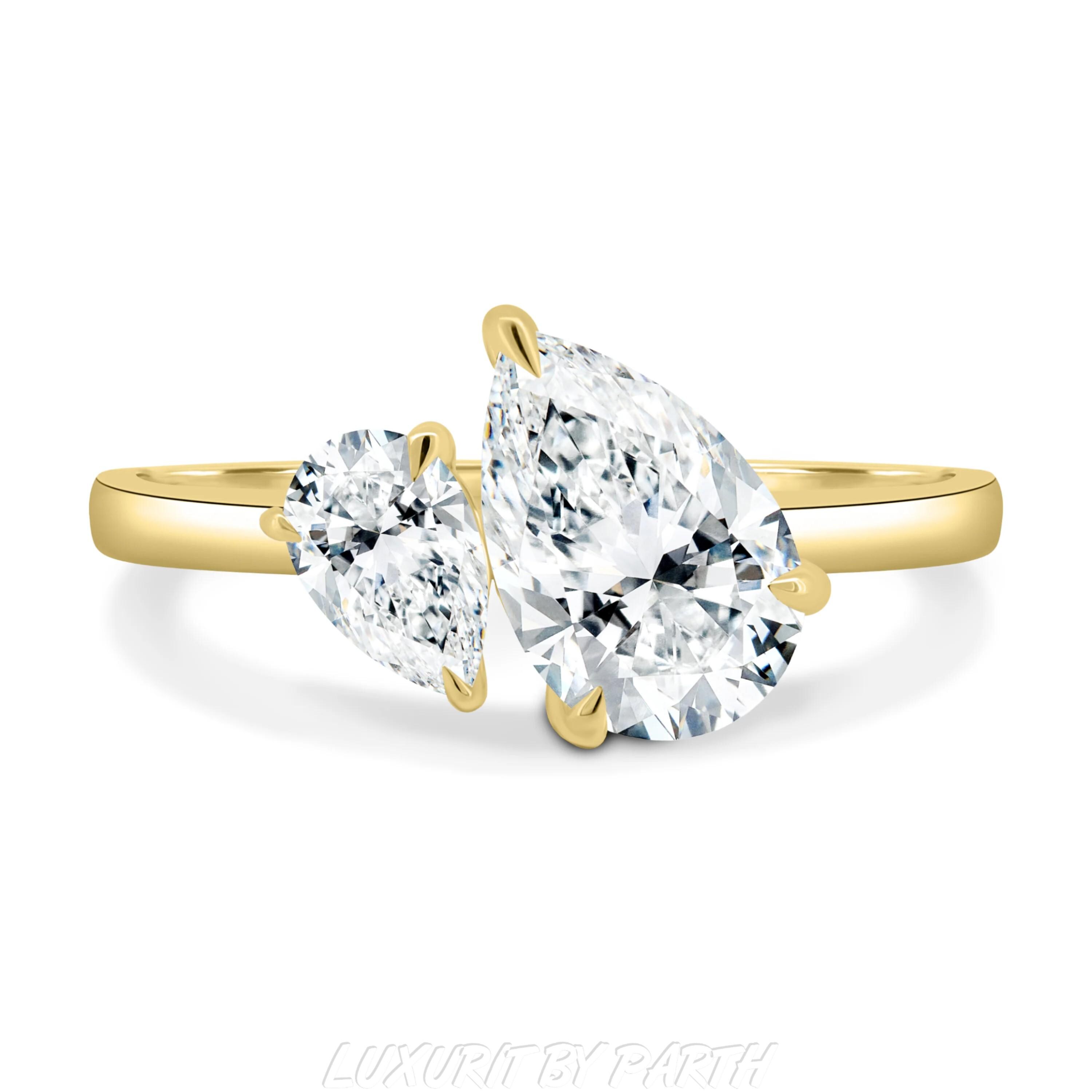 14K Gold Pear Cut Moissanite Moi et Toi Ring