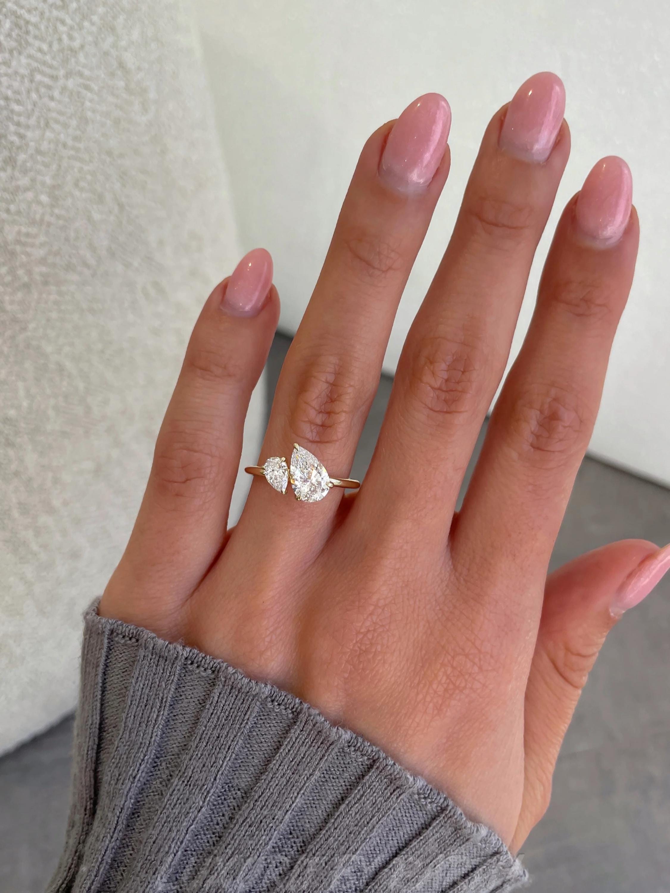 Pear Cut Moissanite on this you and me ring.