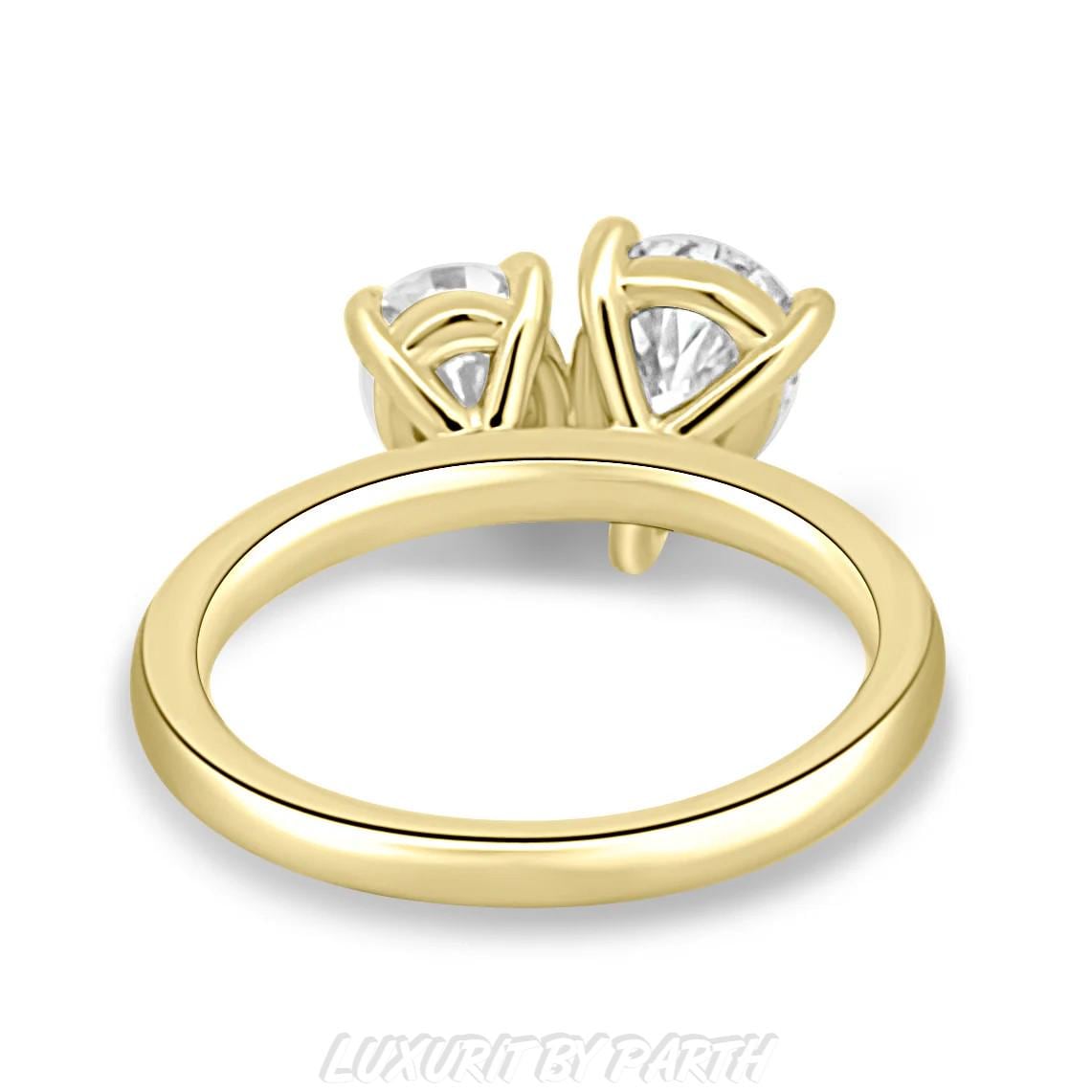14K Solid Gold Pear Cut & Oval Cut Moissanite Engagement Ring, Toi et Moi Bezel Promise Ring, Valentine's Day, Anniversary Gift for Her