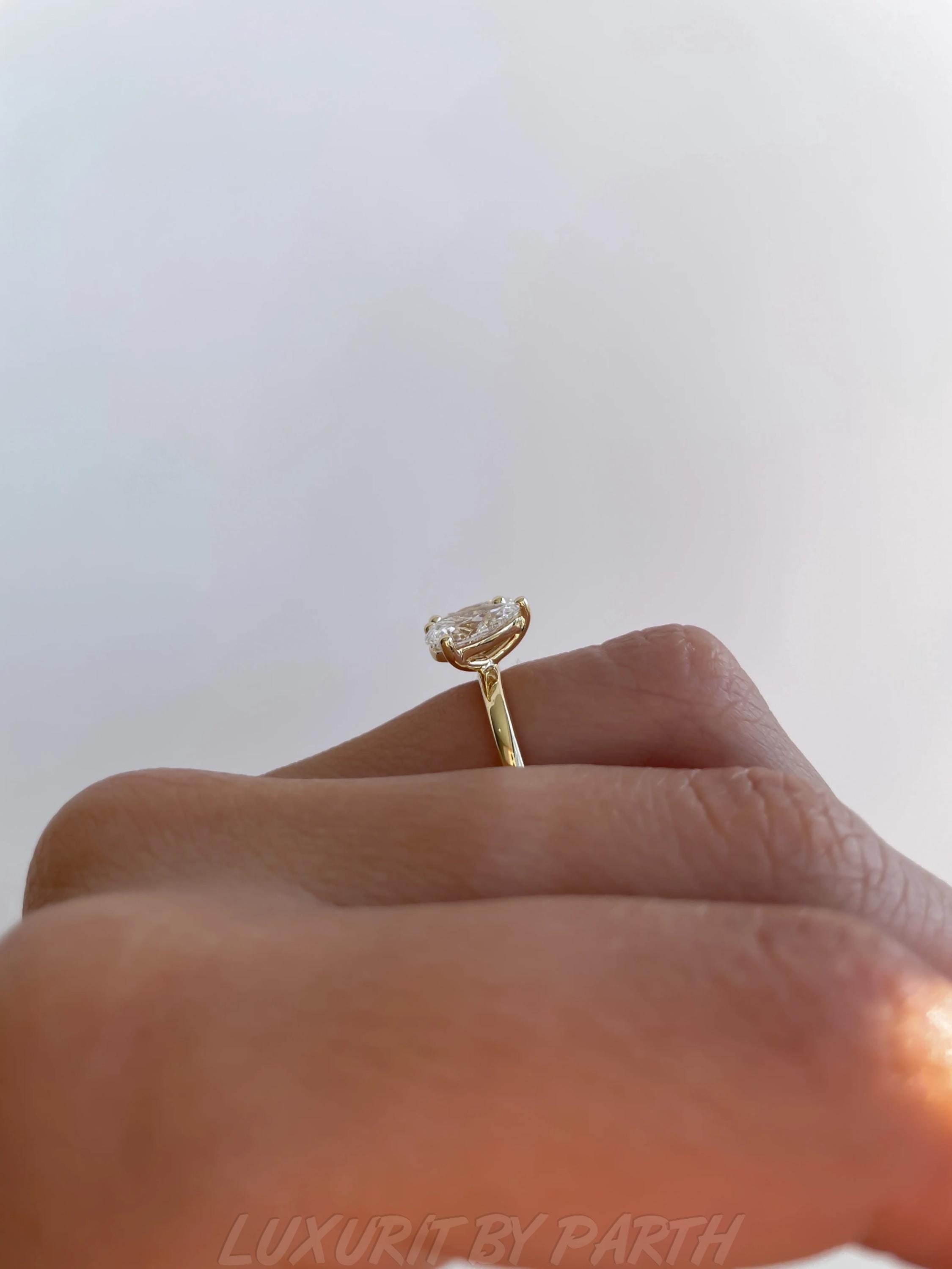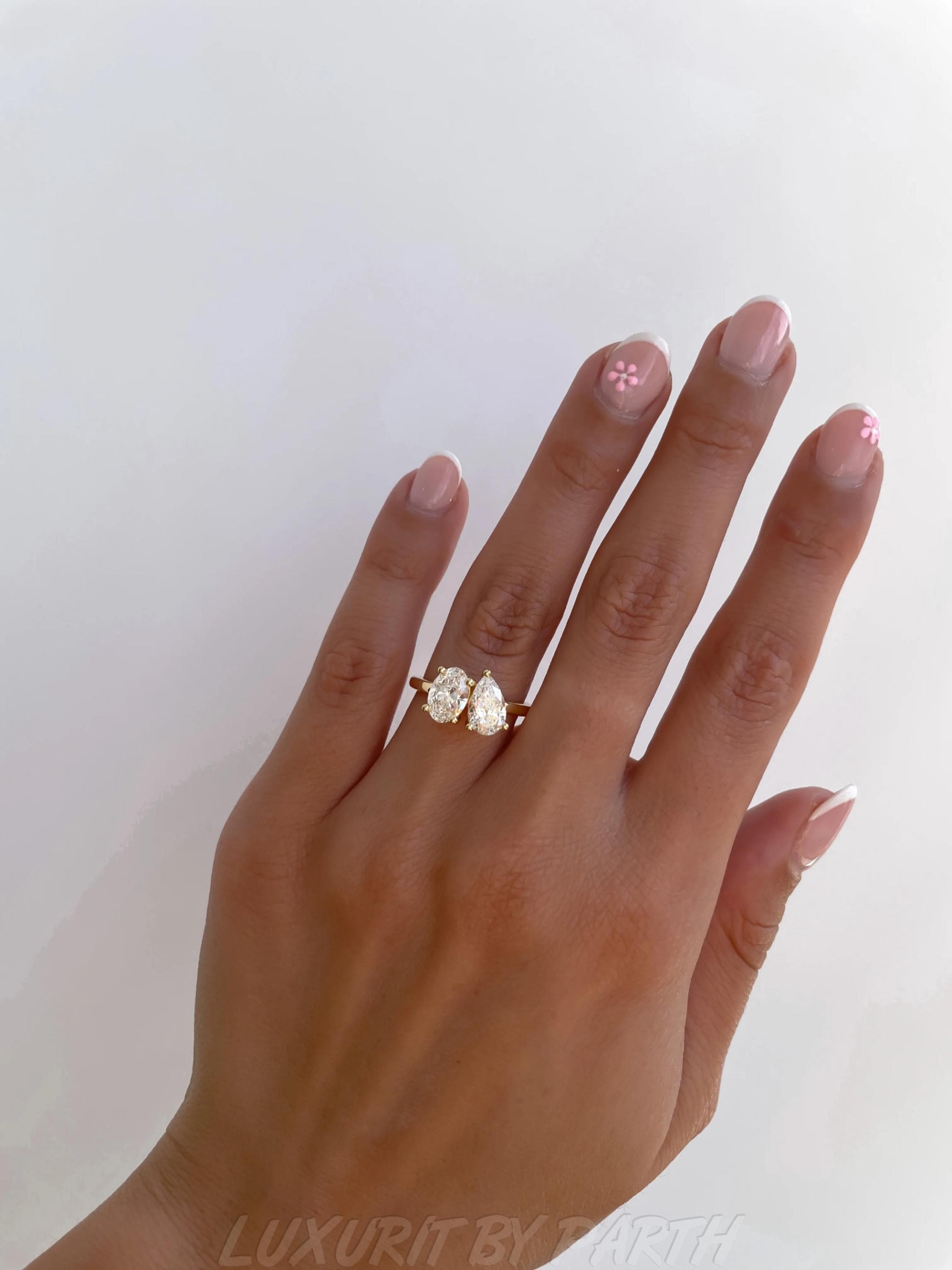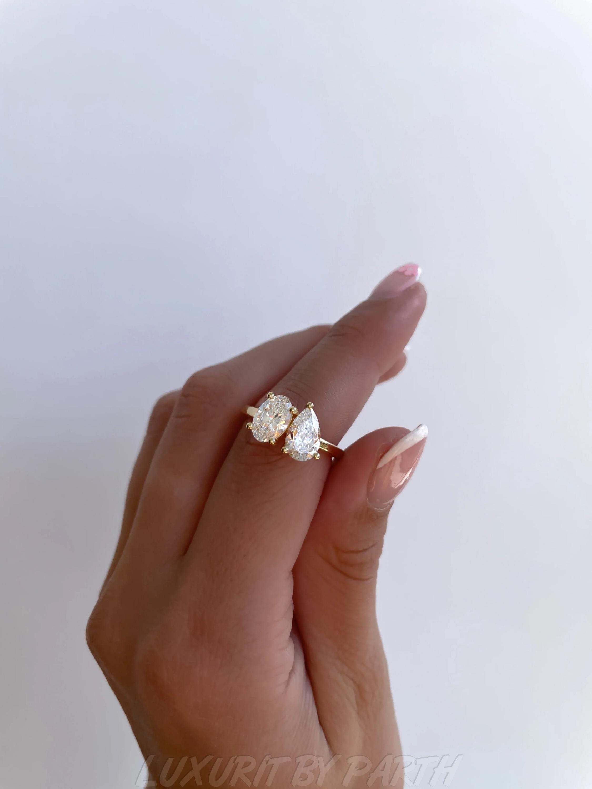 Moissanite Toi et Moi Ring: 14k Gold Pear & Oval Engagement Ring