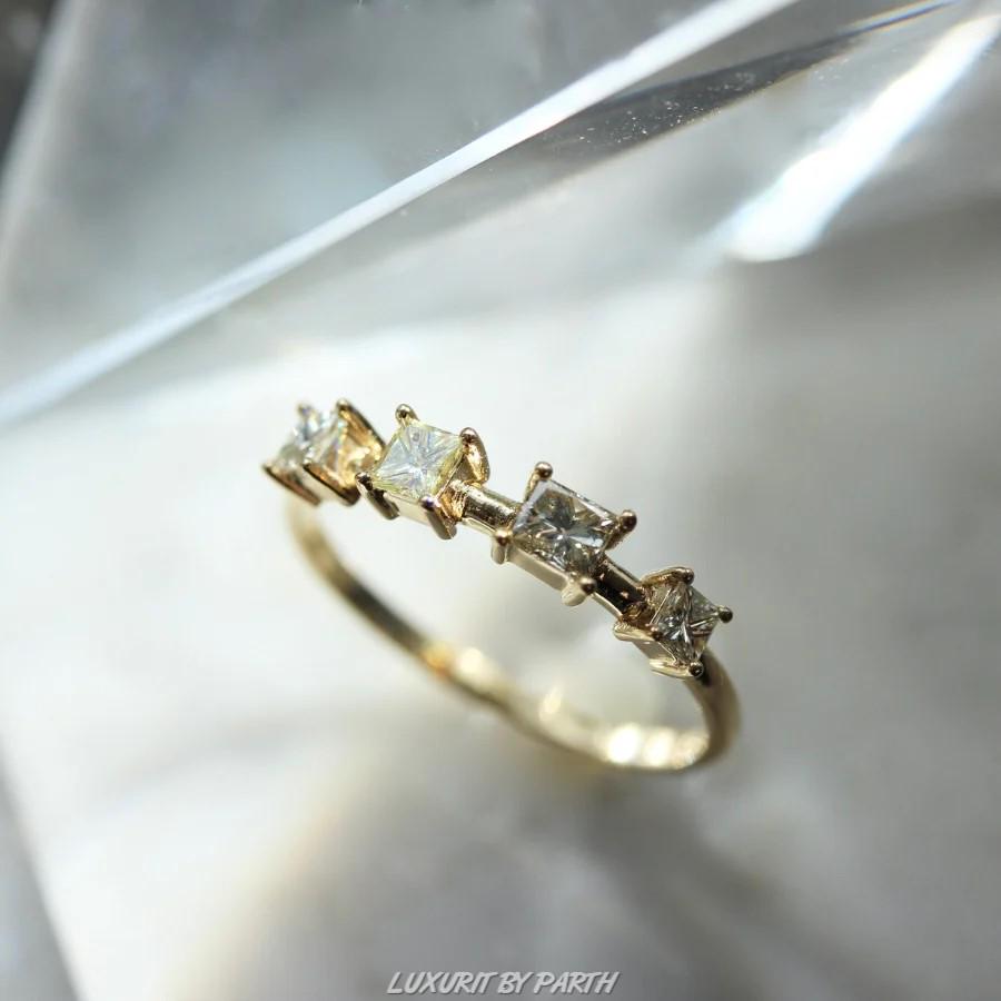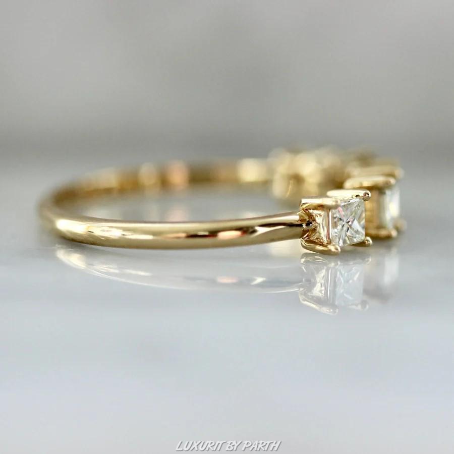 Eternity Ring: Princess Cut Five Stone Moissanite Diamond Gold Stacking Band