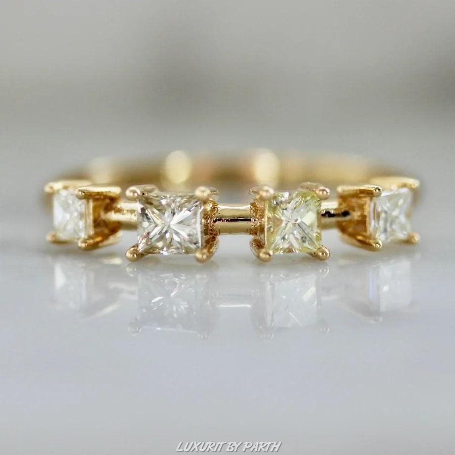 Princess moissanite wedding band, dainty wedding ring, Eternity Ring, 14k Gold Wedding Band, pavé wedding ring, matching bridal set, minimalist wedding band, anniversary gift band, Gift For Her, Vintage Wedding Band, Unique Wedding Band, Affordable Band.