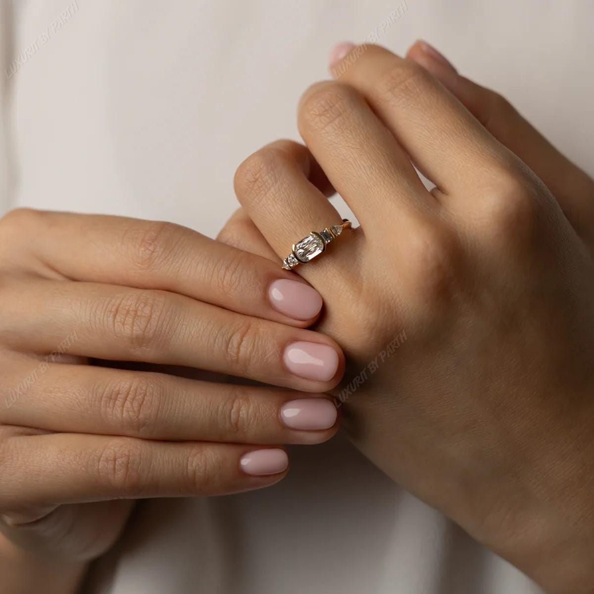 1 CT Cushion Cut Moissanite Ring: Asymmetrical Multi Stone 18k Gold