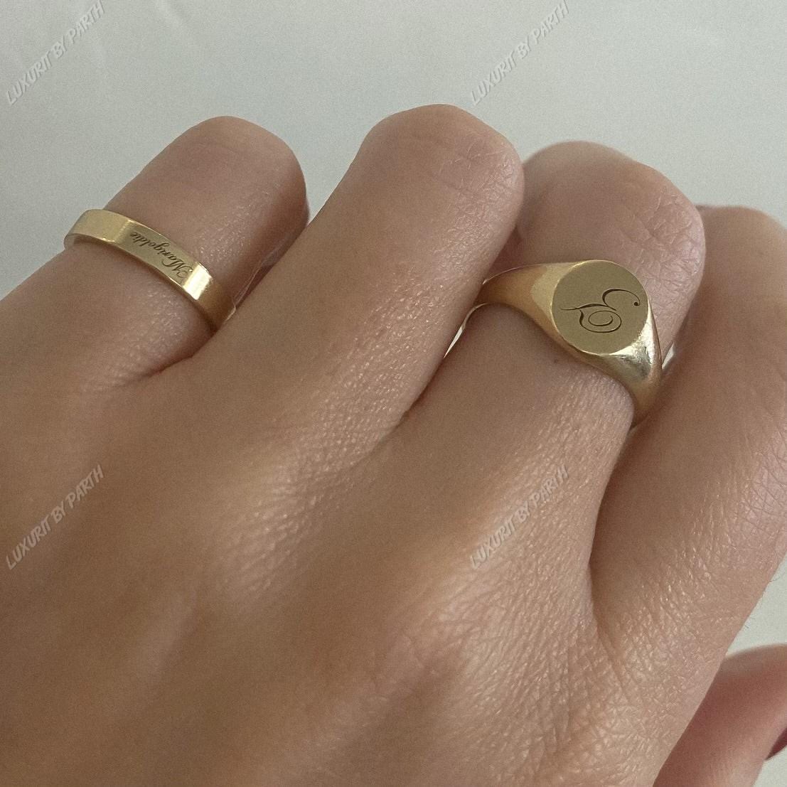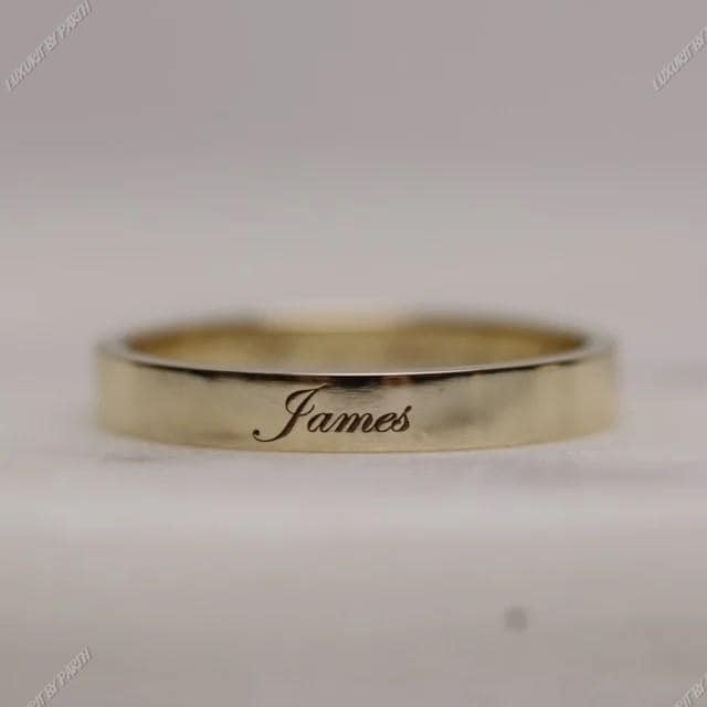 Personalized 14k Gold Engraved Name Ring, Stackable 4mm Band