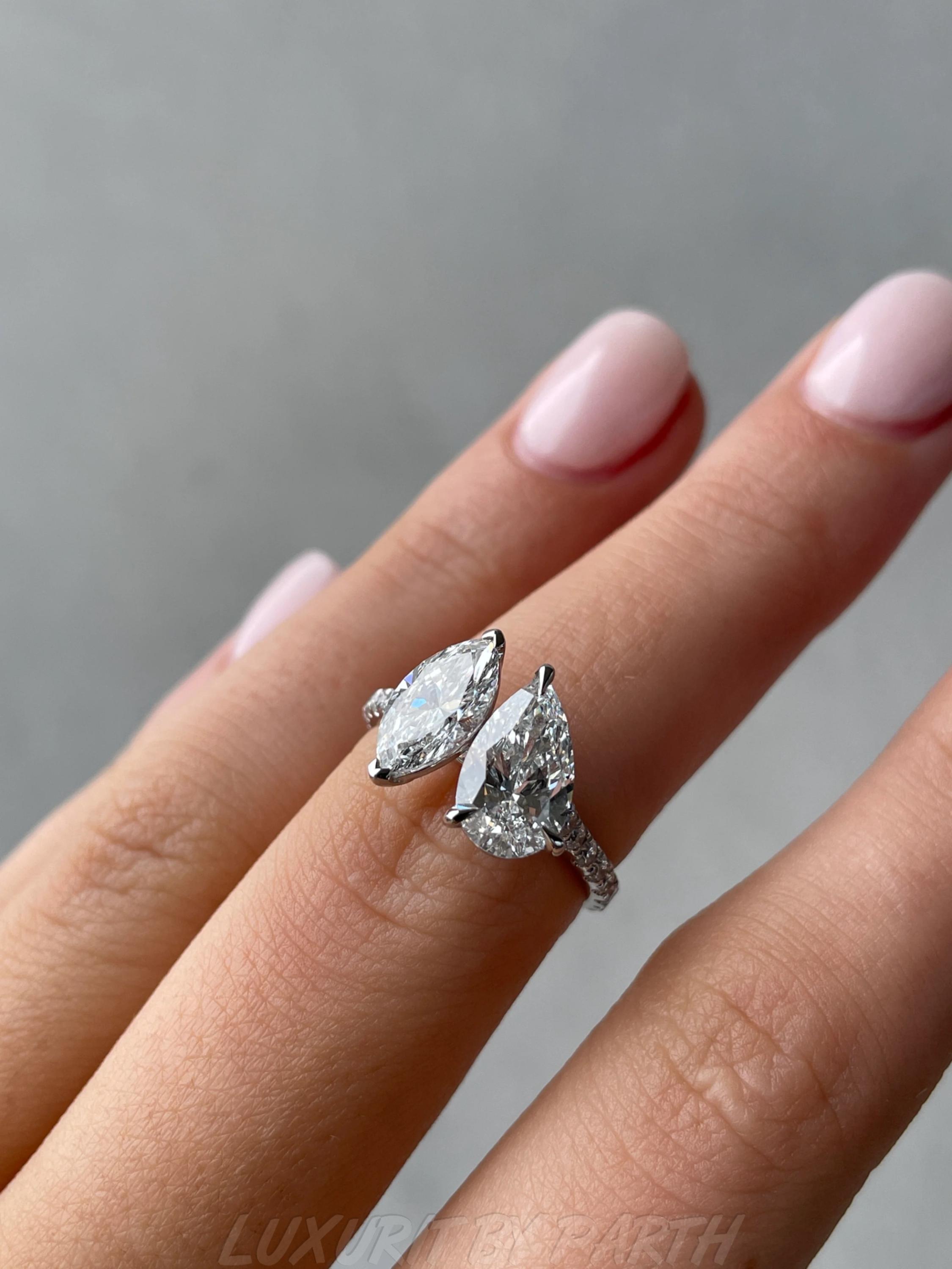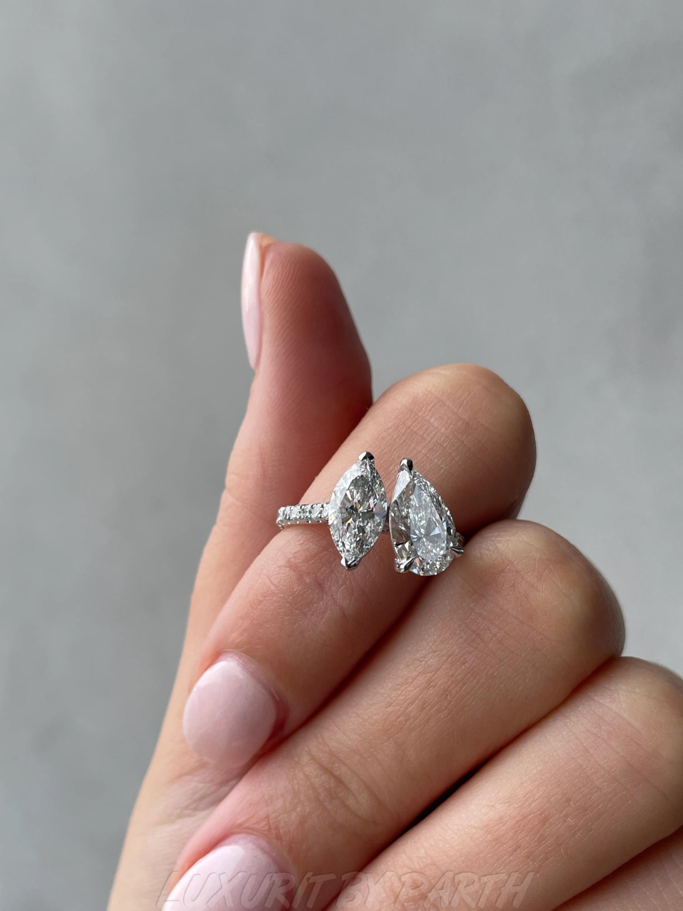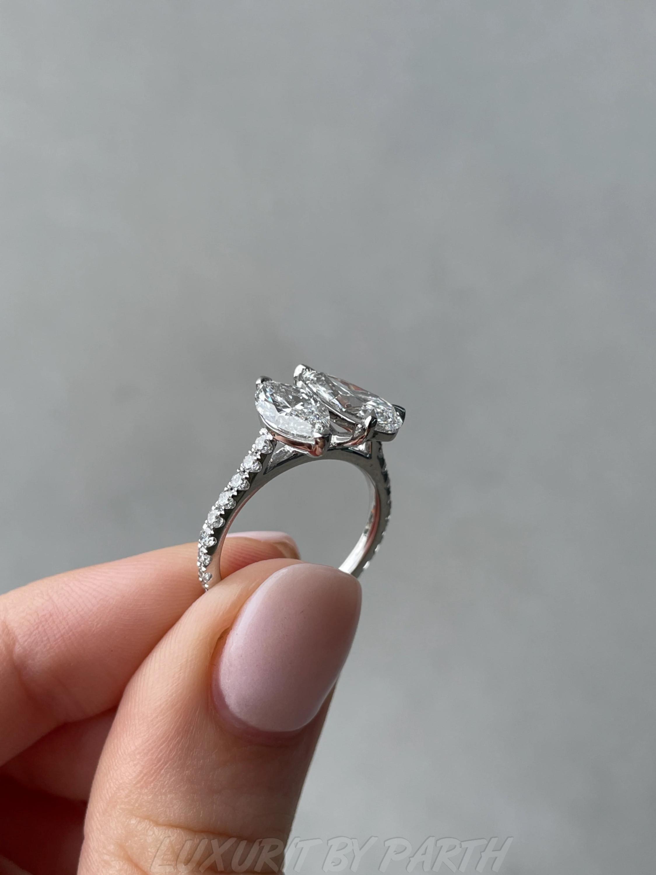 1.32 ctw Moissanite Diamond Pear and Marquise Toi et Moi Ring for her with Unique Design.