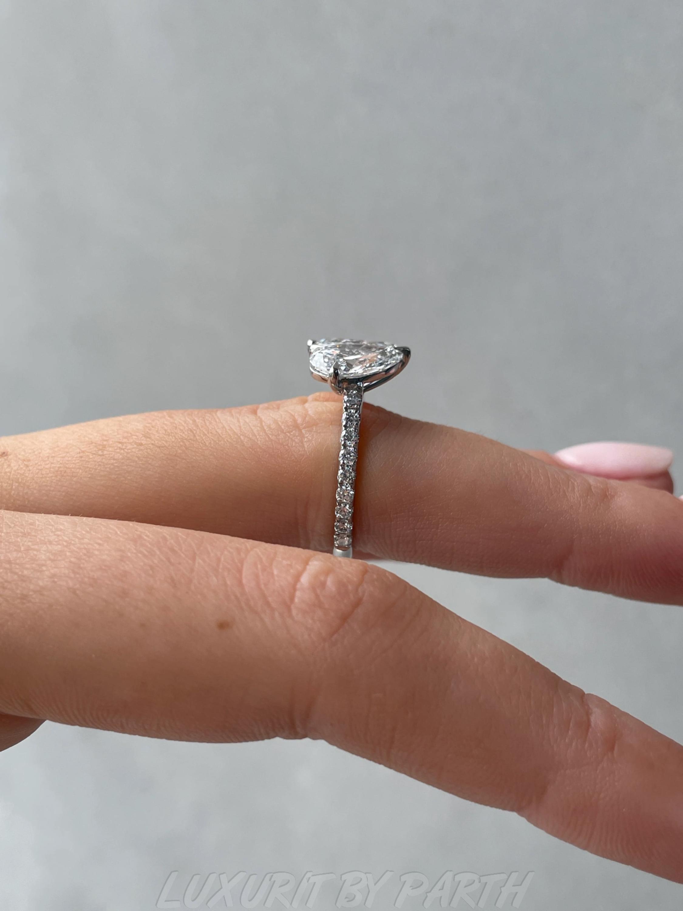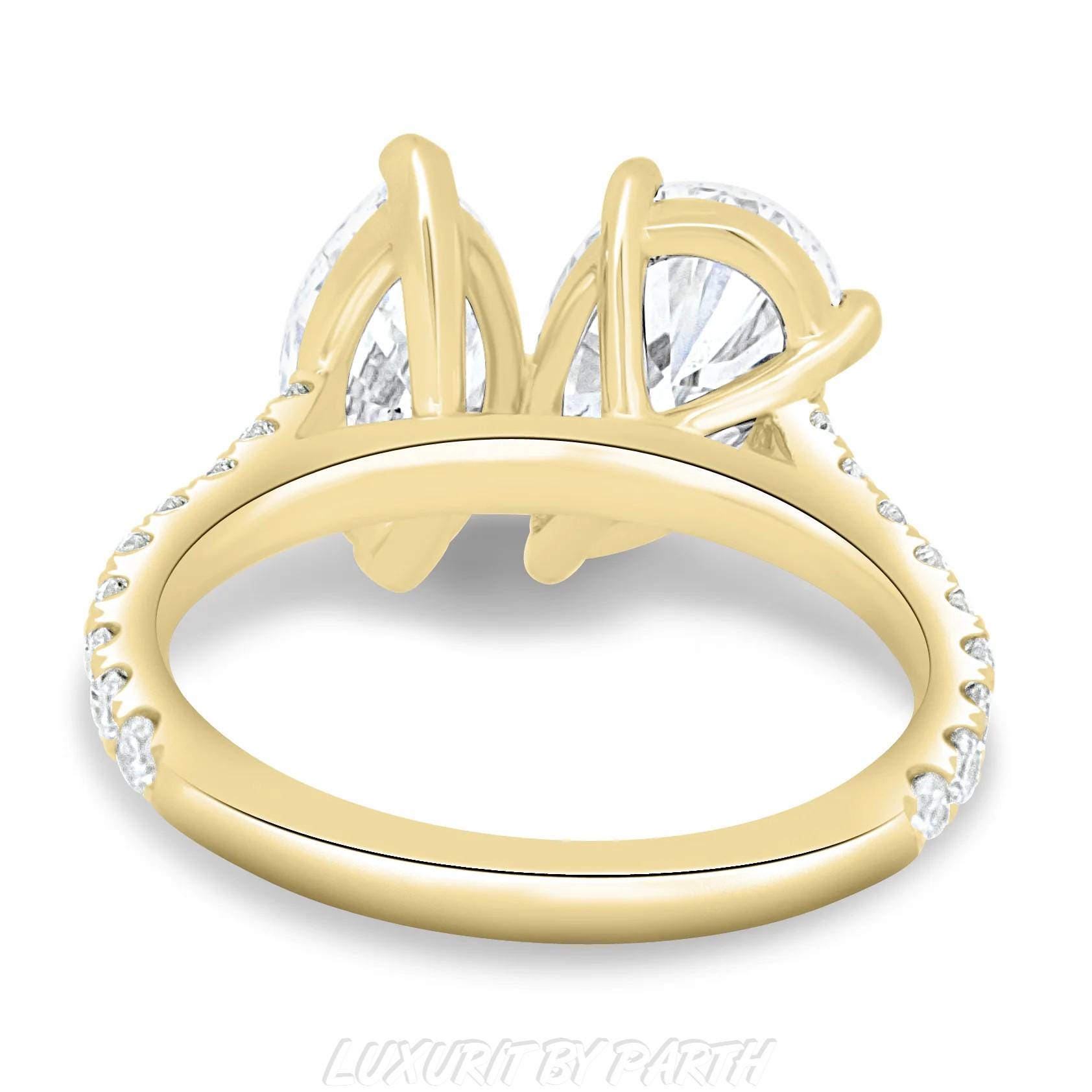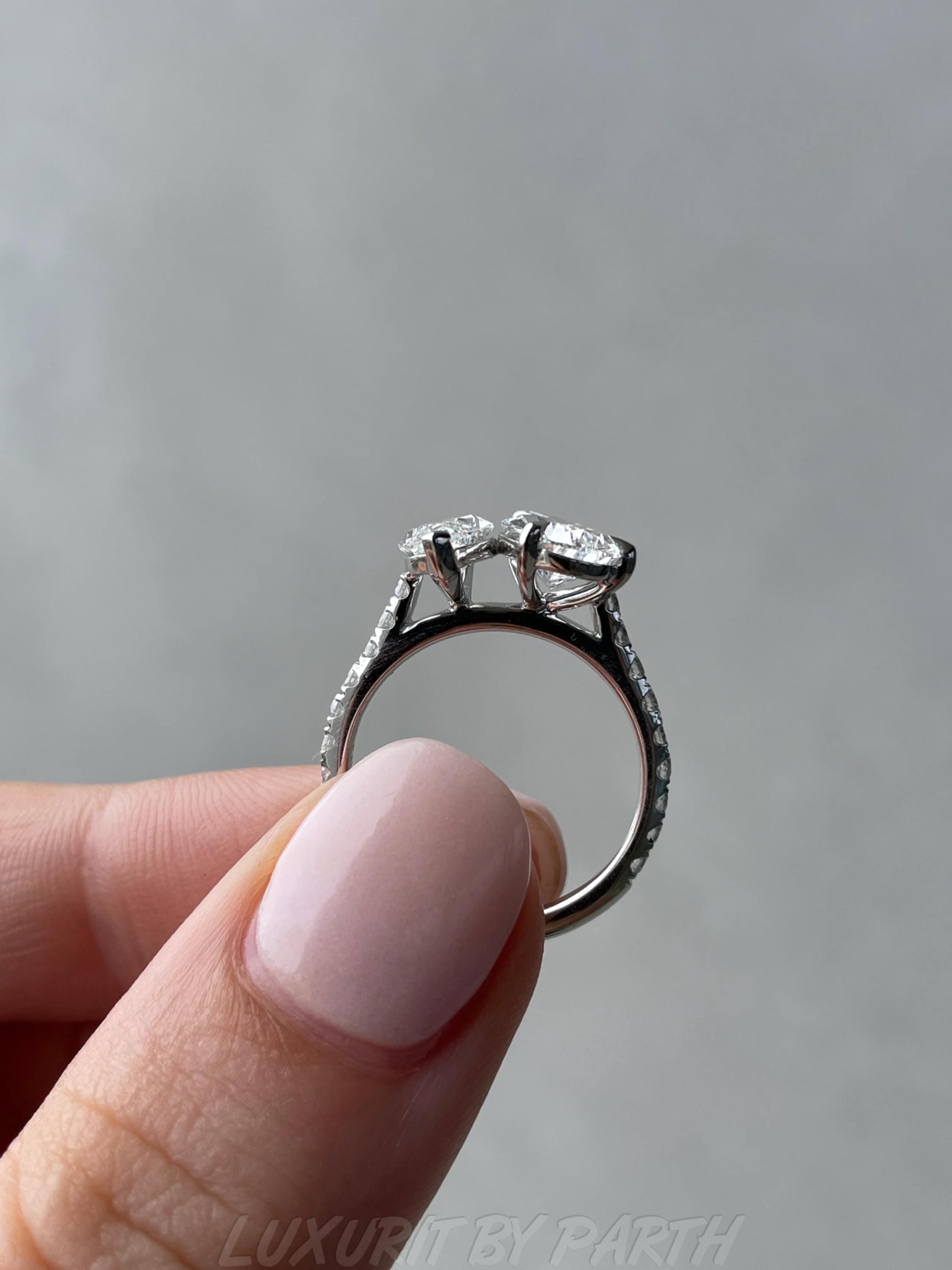 1.32 ctw Moissanite Diamond Pear and Marquise Toi et Moi Ring for her with Unique Design.