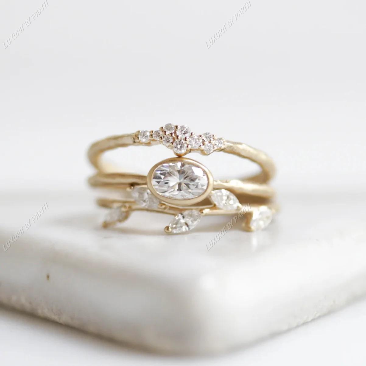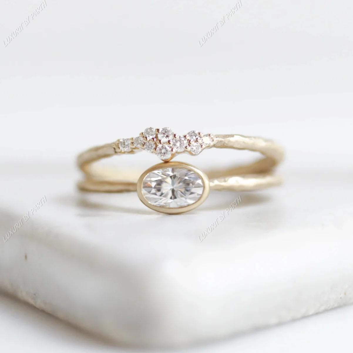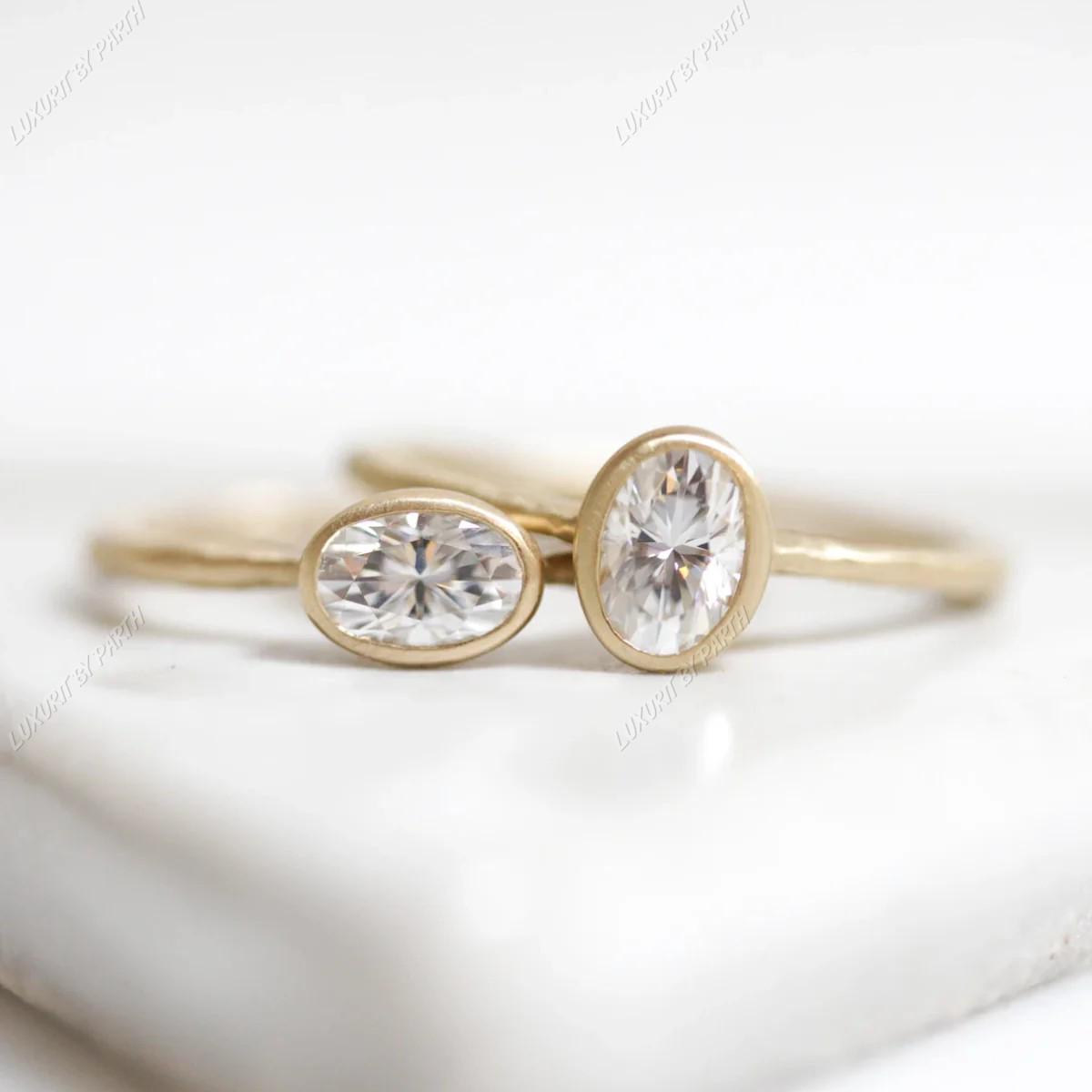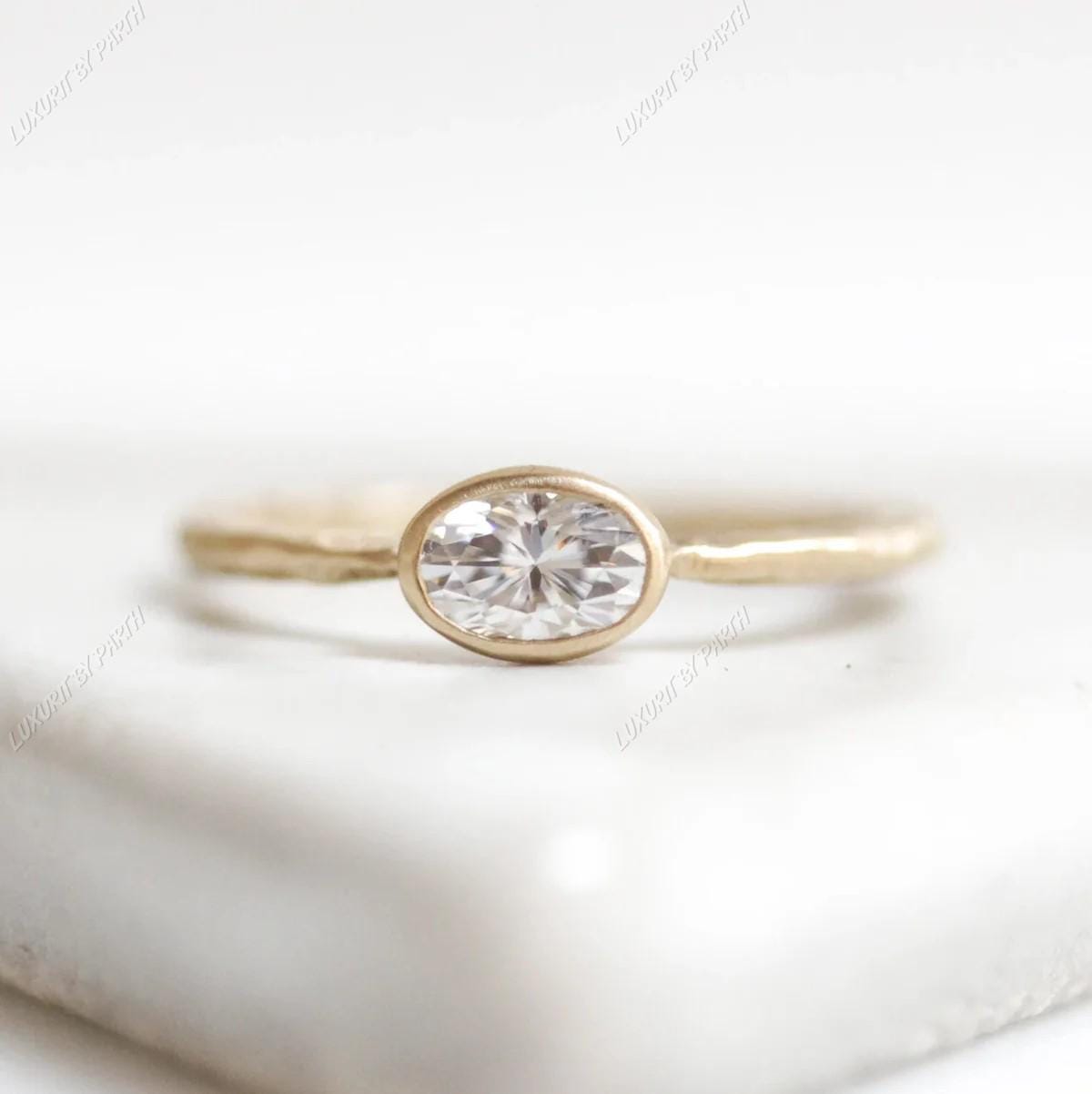 Bezel Set Oval Moissanite Ring: 14K Gold Solitaire