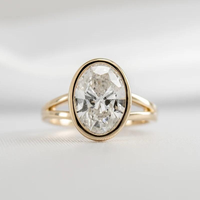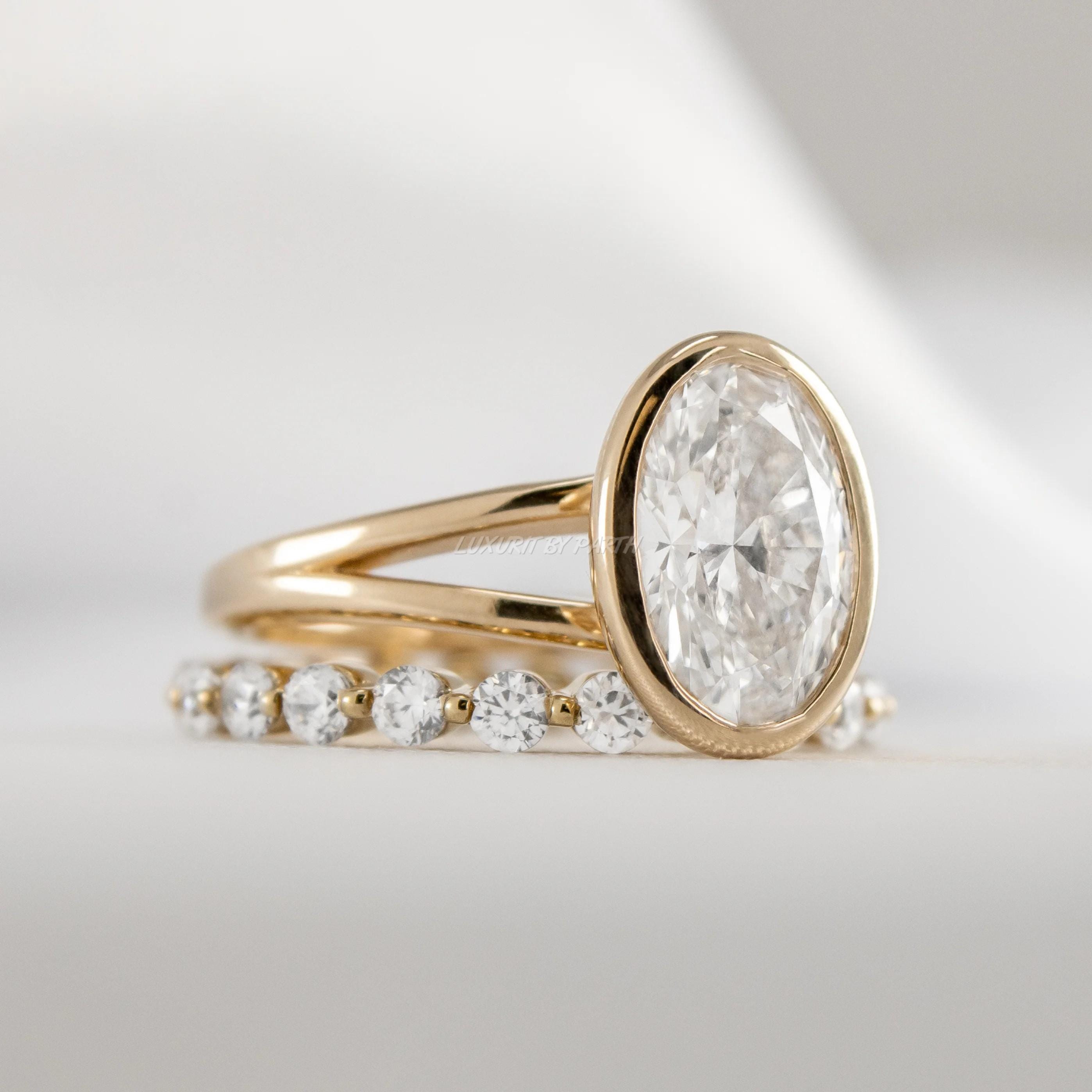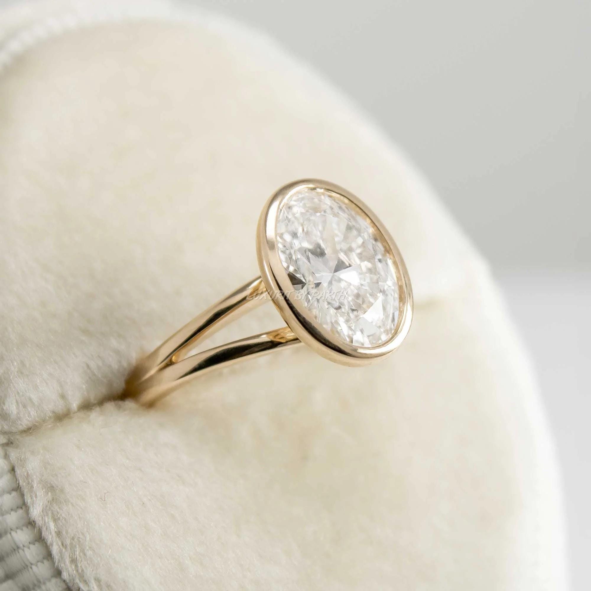 Oval Moissanite Engagement Ring: Emery Bezel, Solid Gold Promise Ring