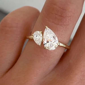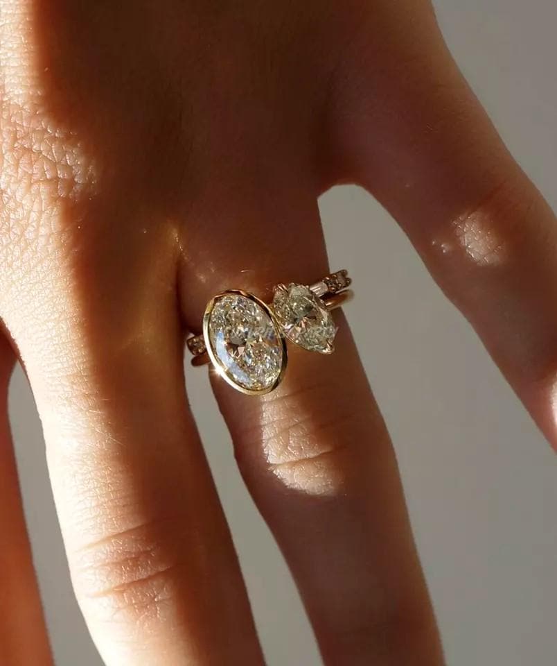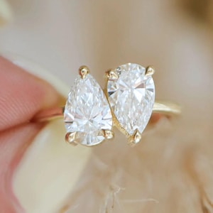 Toi Et Moi Ring, moi et toi ring, Two Stone Ring, Couple Ring, Engagement Ring, Wedding Ring, 14k Gold Engagement Ring, Moissanite Diamond Ring, Multi Stone Ring, You and Me Ring, Love Ring, Unique Design Ring, Double Moissanite Diamond Ring, Gold Wedding Ring, Antique Shape Ring, Gift For Her, Anniversary Gift For Her