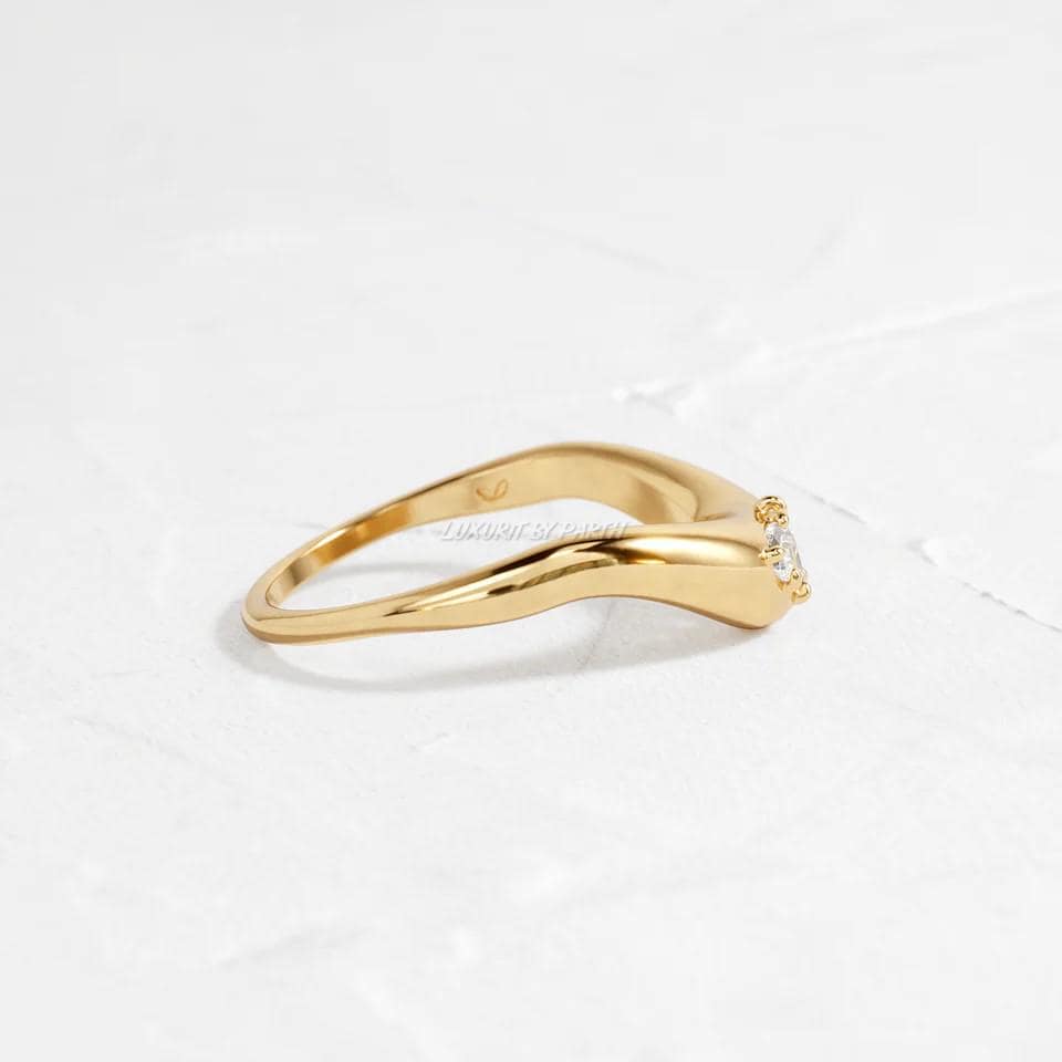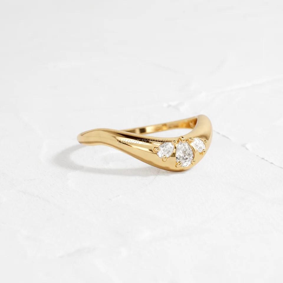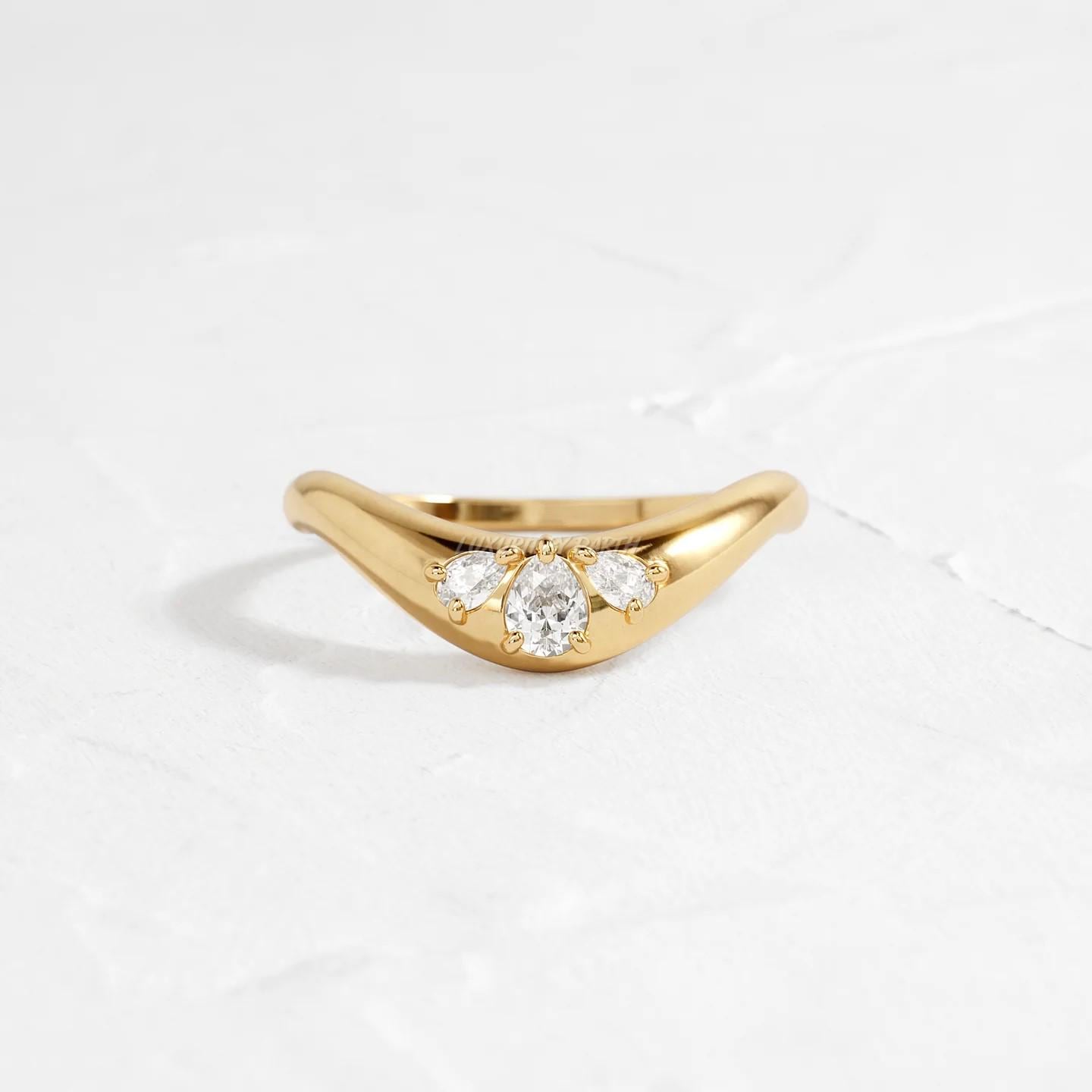 14k Yellow Gold Wedding Band, Pear Moissanite Diamond Matching Ring, Women's Jewelry