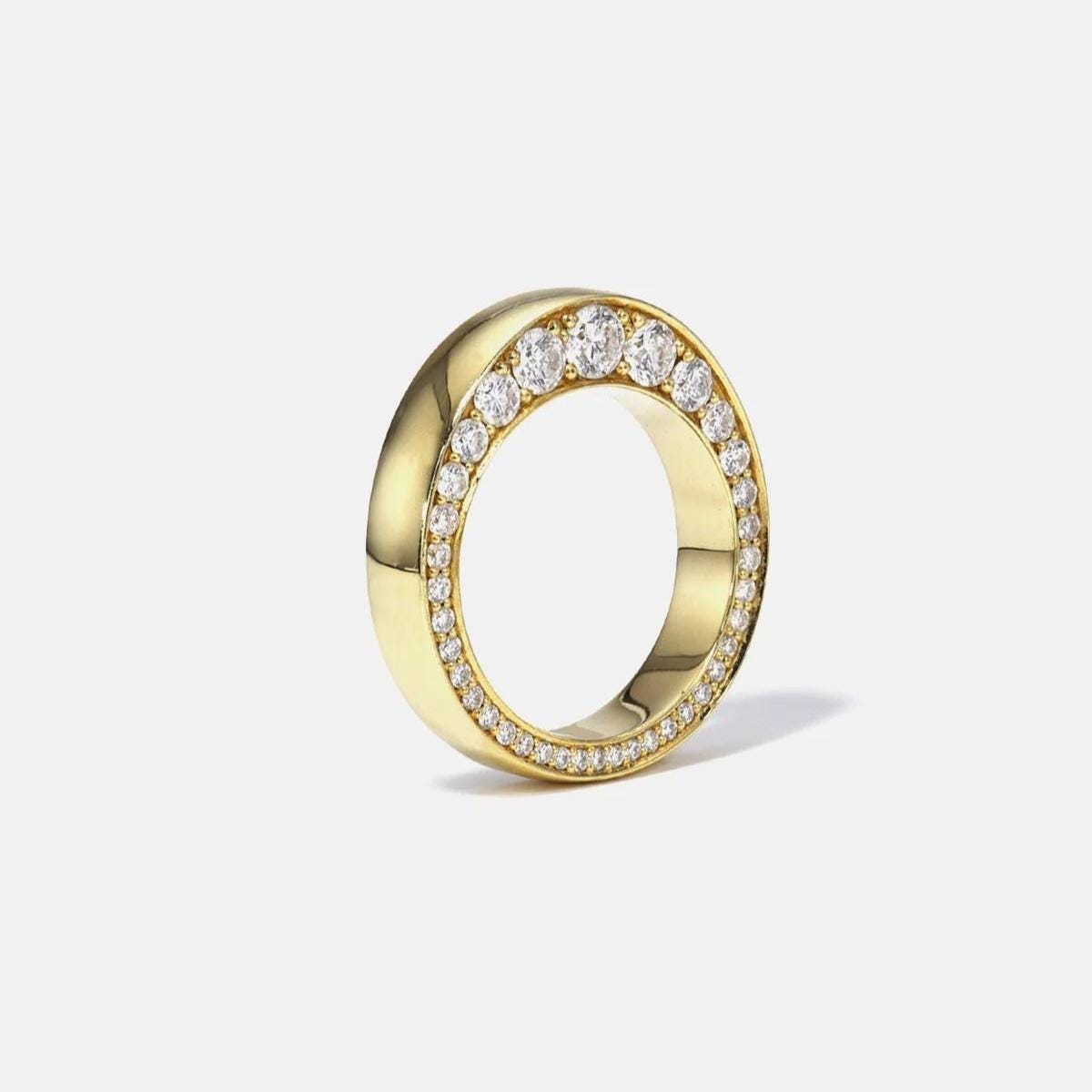 14K Yellow Gold Two Sided Pave Moissanite Band, 2 Row Full Eternity Wedding Ring