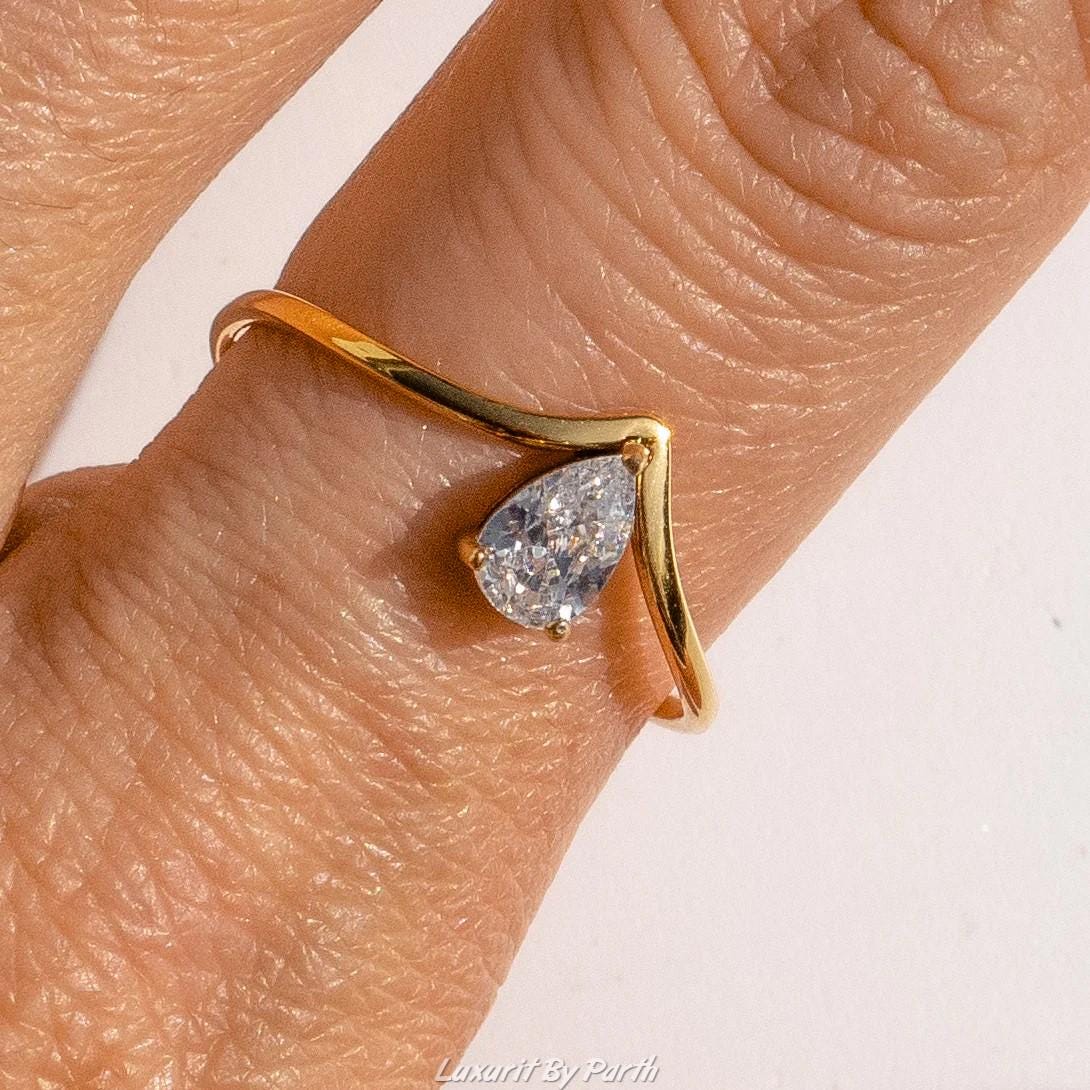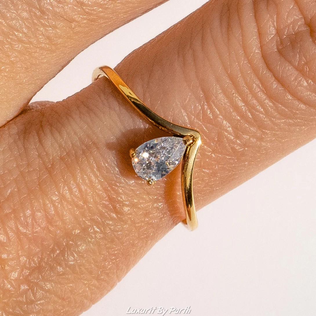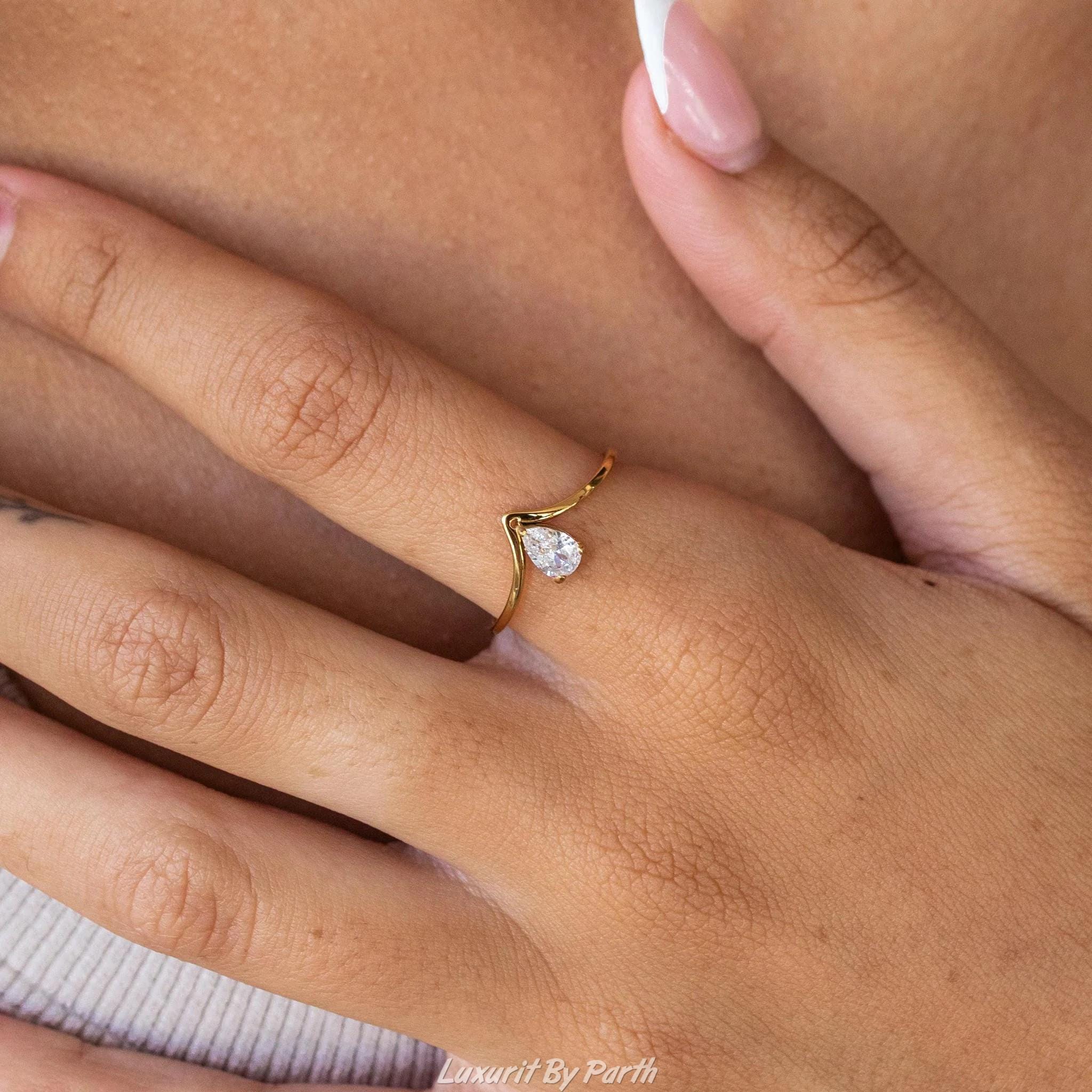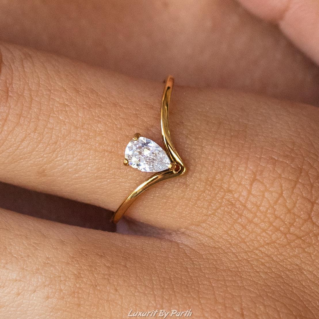 Pear Moissanite Engagement Ring, 14k Solid Gold Anniversary Ring