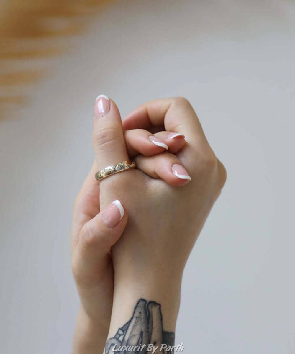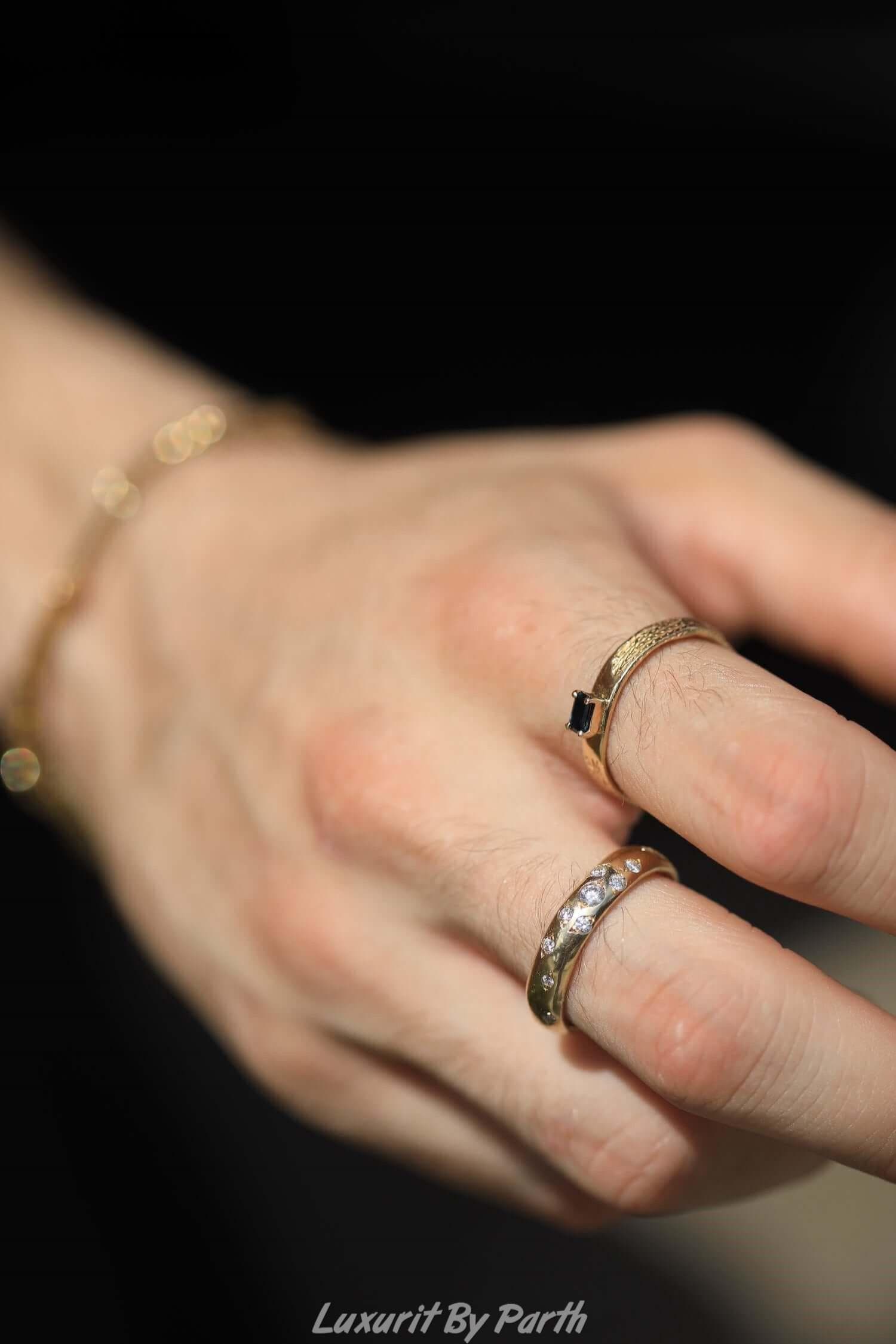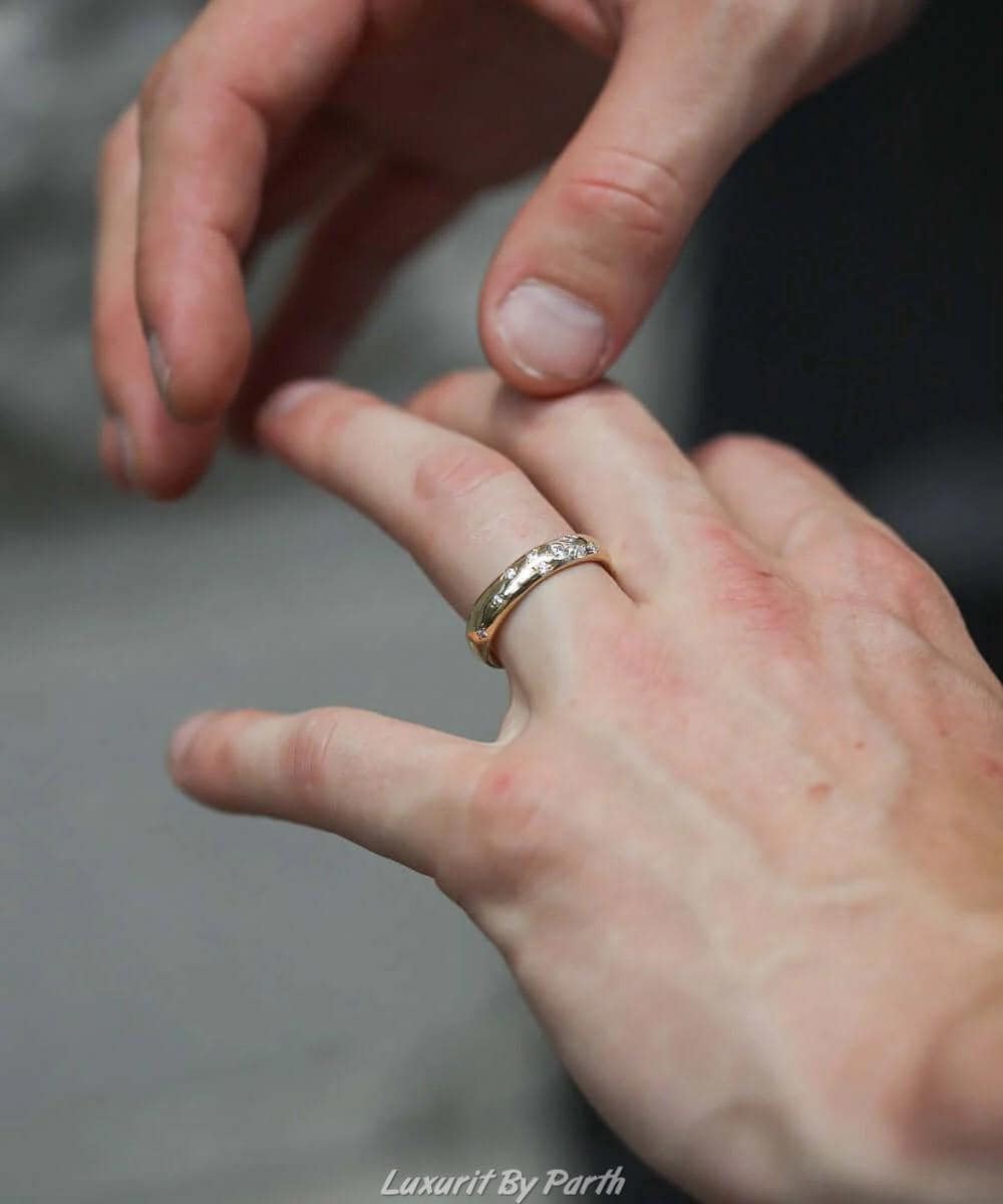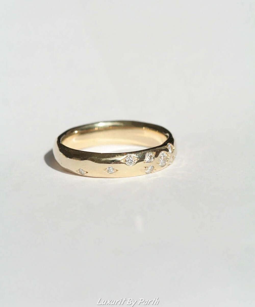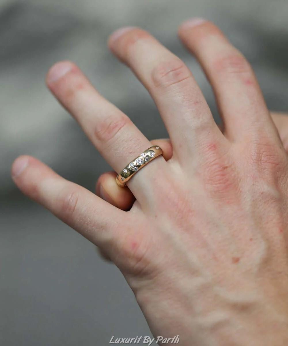 14k Real Solid Gold band, 5mm Wide Moissanite Diamonds Studded Ring, Custom Engraving Ring, Round Cut Polish Diamonds band, Unisex Band