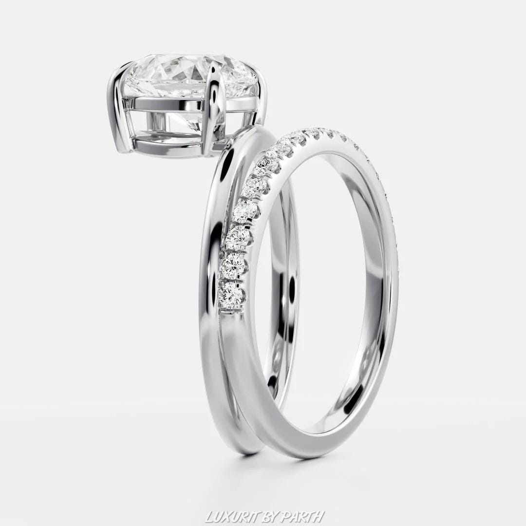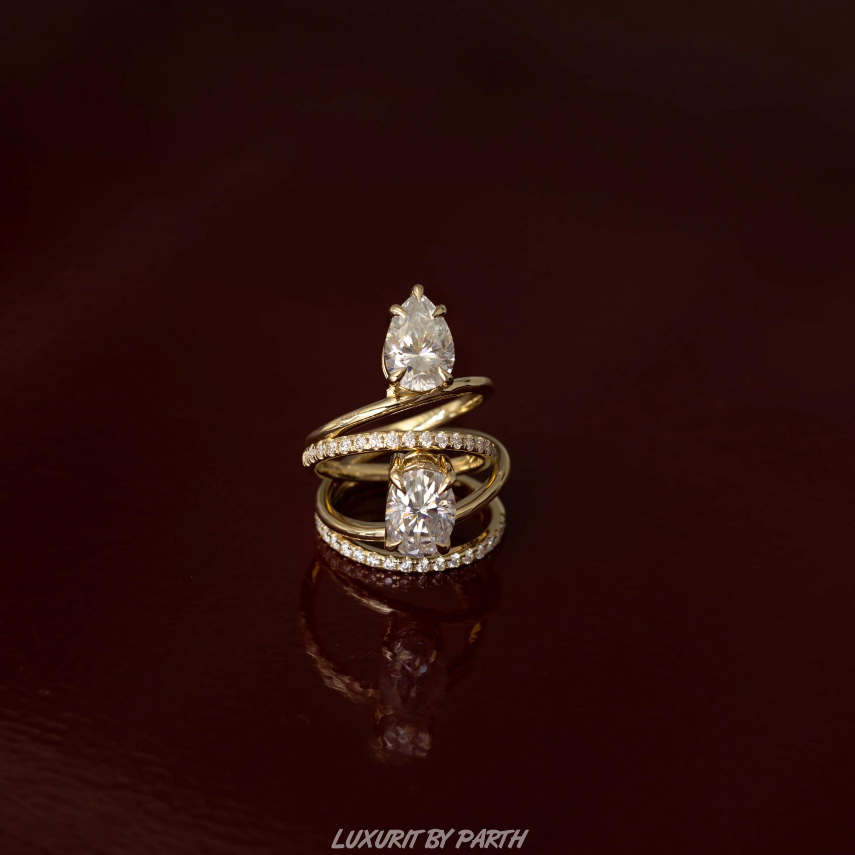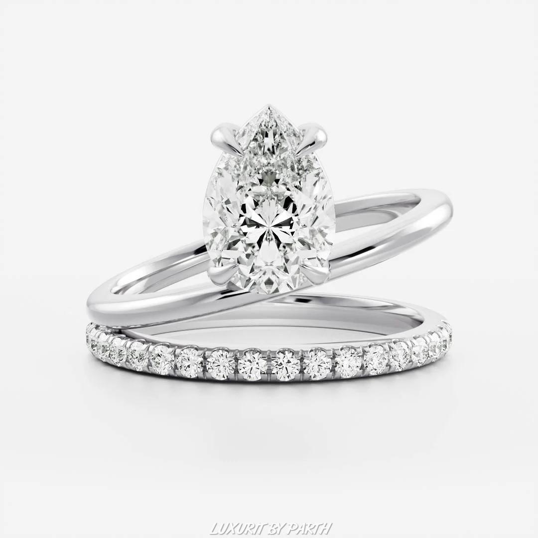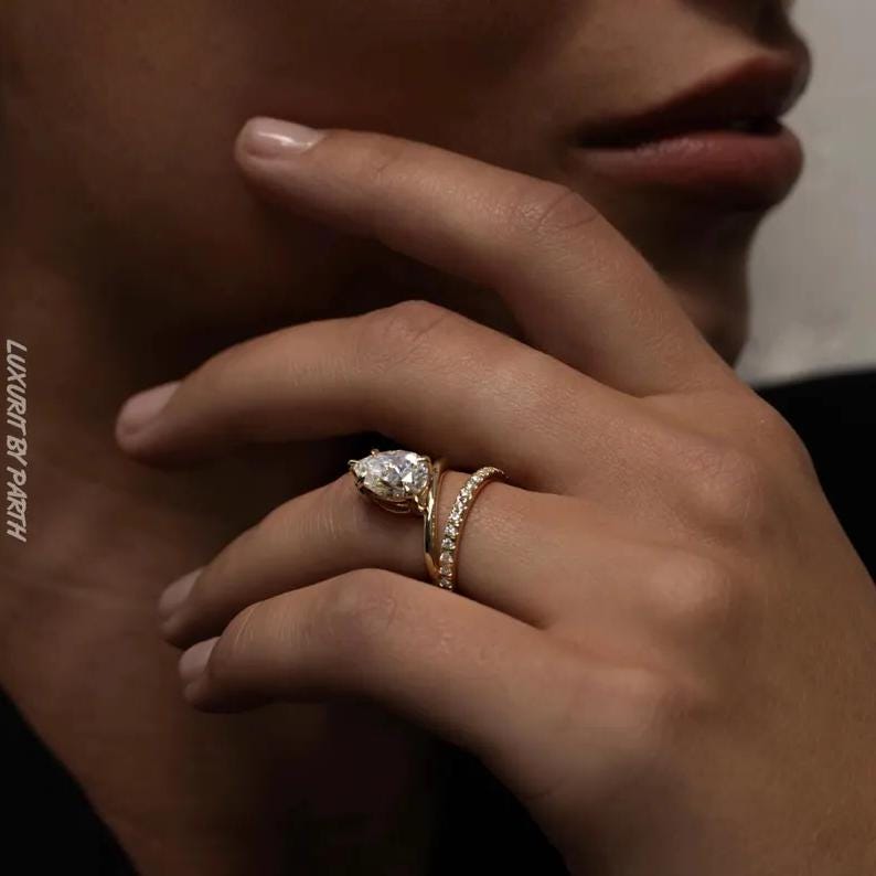 Pear Engagement Ring, 14K Yellow Gold Solitaire Diamond Minimalist Bridal Set, Pear Double Band Solitaire Moissanite Diamond Engagement Ring, Unique Style Ring, Double band Ring, Proposal Ring, Gift For Her, Anniversary