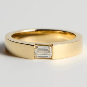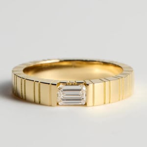 Bezel Set Emerald Cut Moissanite Diamond Ring, 14k Yellow Gold Emerald Diamond Engagement Ring, Anniversary Gifts, Gift For Her, Emerald Wedding Band, Moissanite Diamond Band, Anniversary Gifts, Unique Promise Ring, Dainty Emerald Ring, Handmade Ring