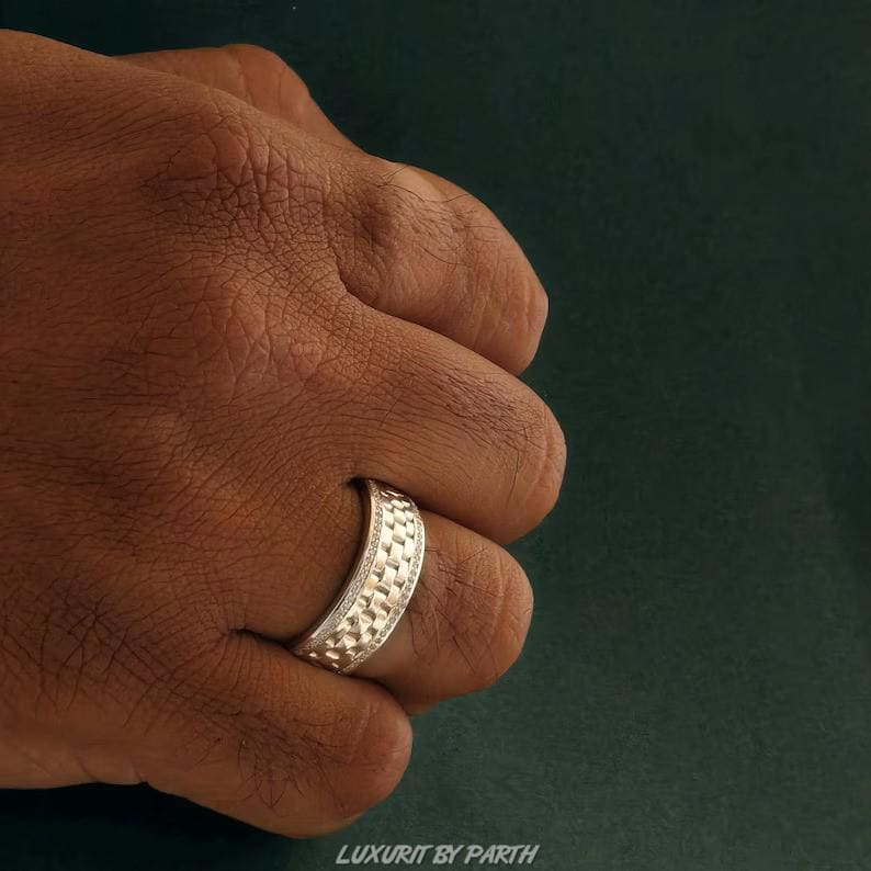 Mens Wedding Band, unique mens wedding bands, Gift for him, wedding band men, Wide silver ring, Geometric ring, Textured band, Anniversary ring, Mens gold ring, Unique wedding band, Promise ring men, Everyday ring, Silver band ring, Modern mens jewelry, Wide band ring, Stylish ring for men, Wedding ring gift