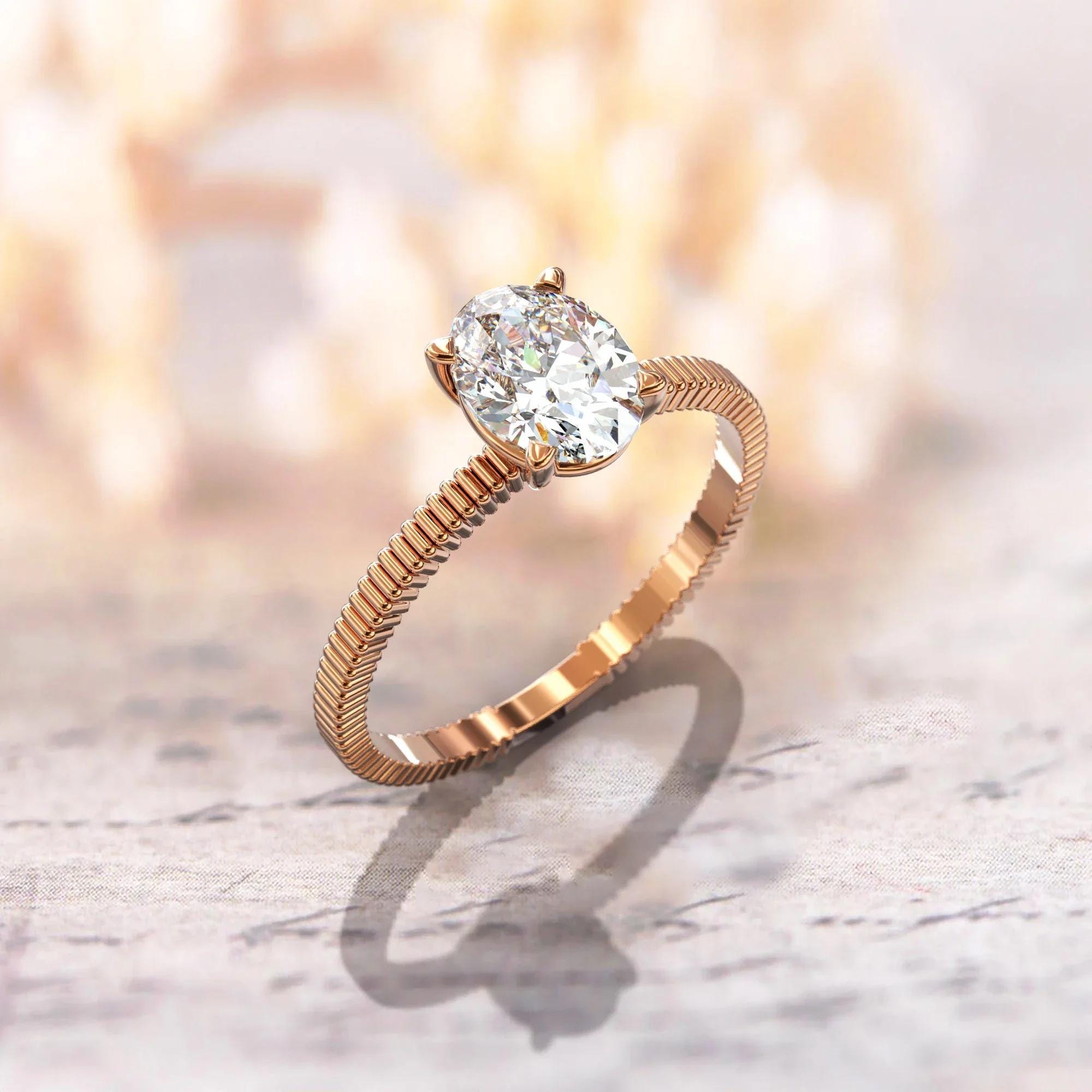Oval Cut Moissanite Engagement Ring Rose Gold | Vintage Solitaire Promise Ring | Unique Wedding Jewelry Gift for Her, Oval cut ring, Rose gold ring, Solitaire ring, Vintage style ring, Moissanite ring, Promise ring, Bridal jewelry, Dainty gold ring, Wedding ring, Oval engagement, Gift for her, Anniversary ring, Delicate ring, Classic ring, Elegant jewelry