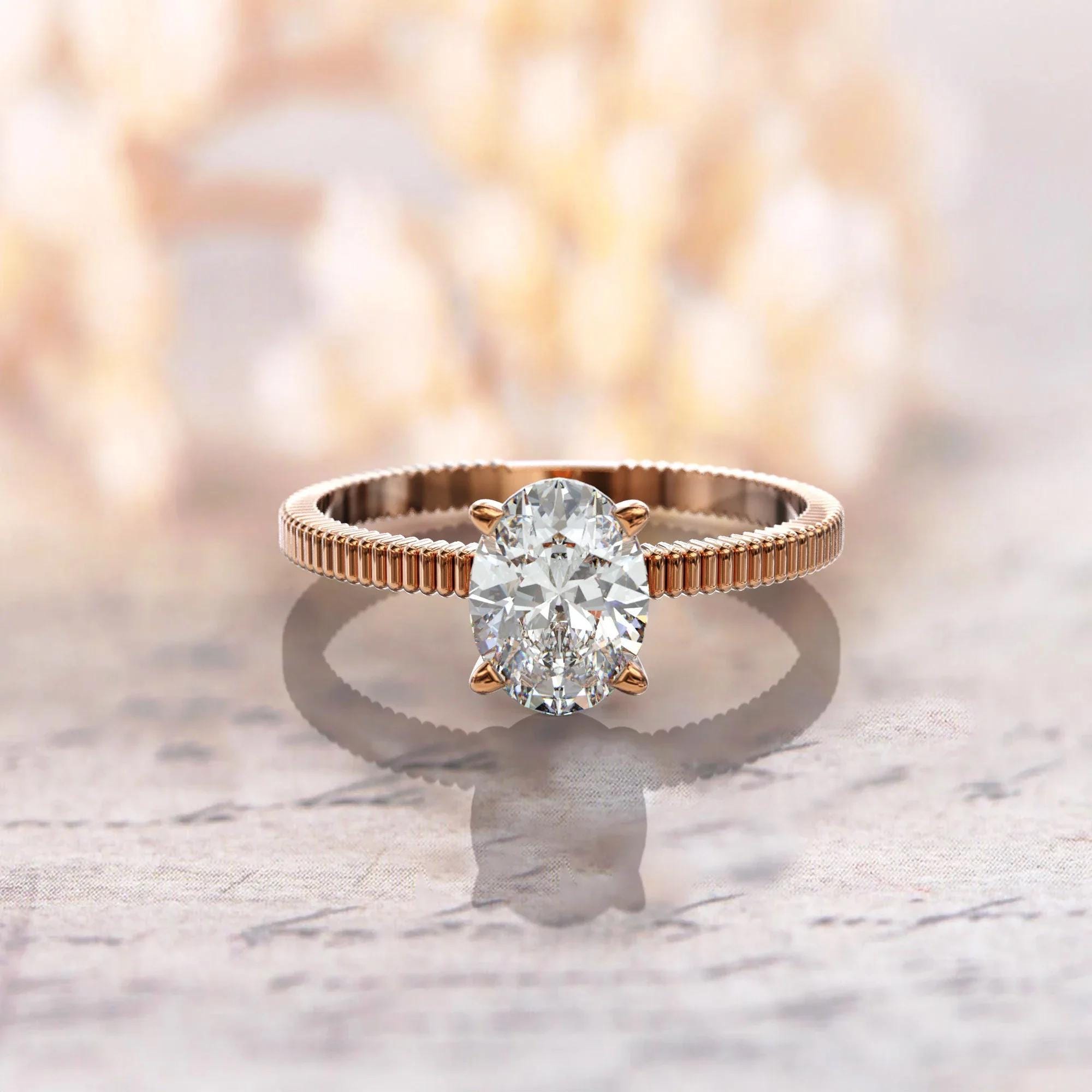 Vintage Oval Moissanite Engagement Ring - 14K Rose Gold Solitaire