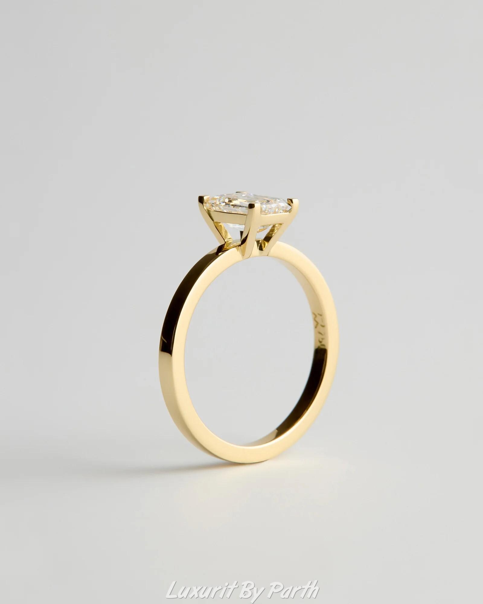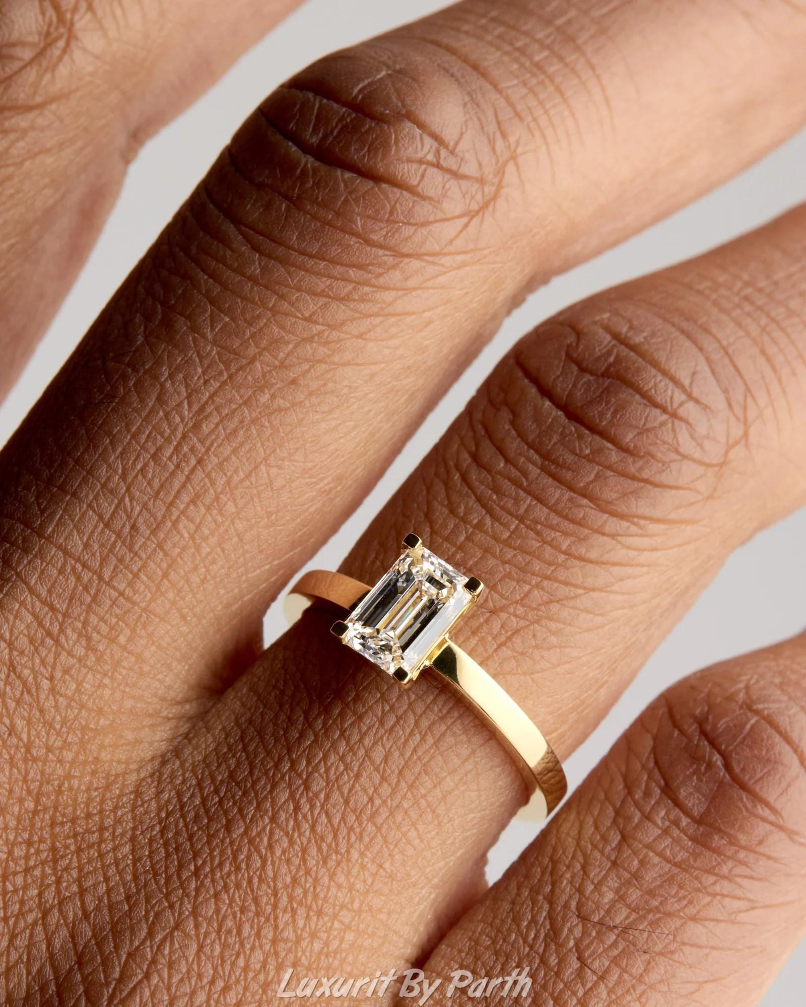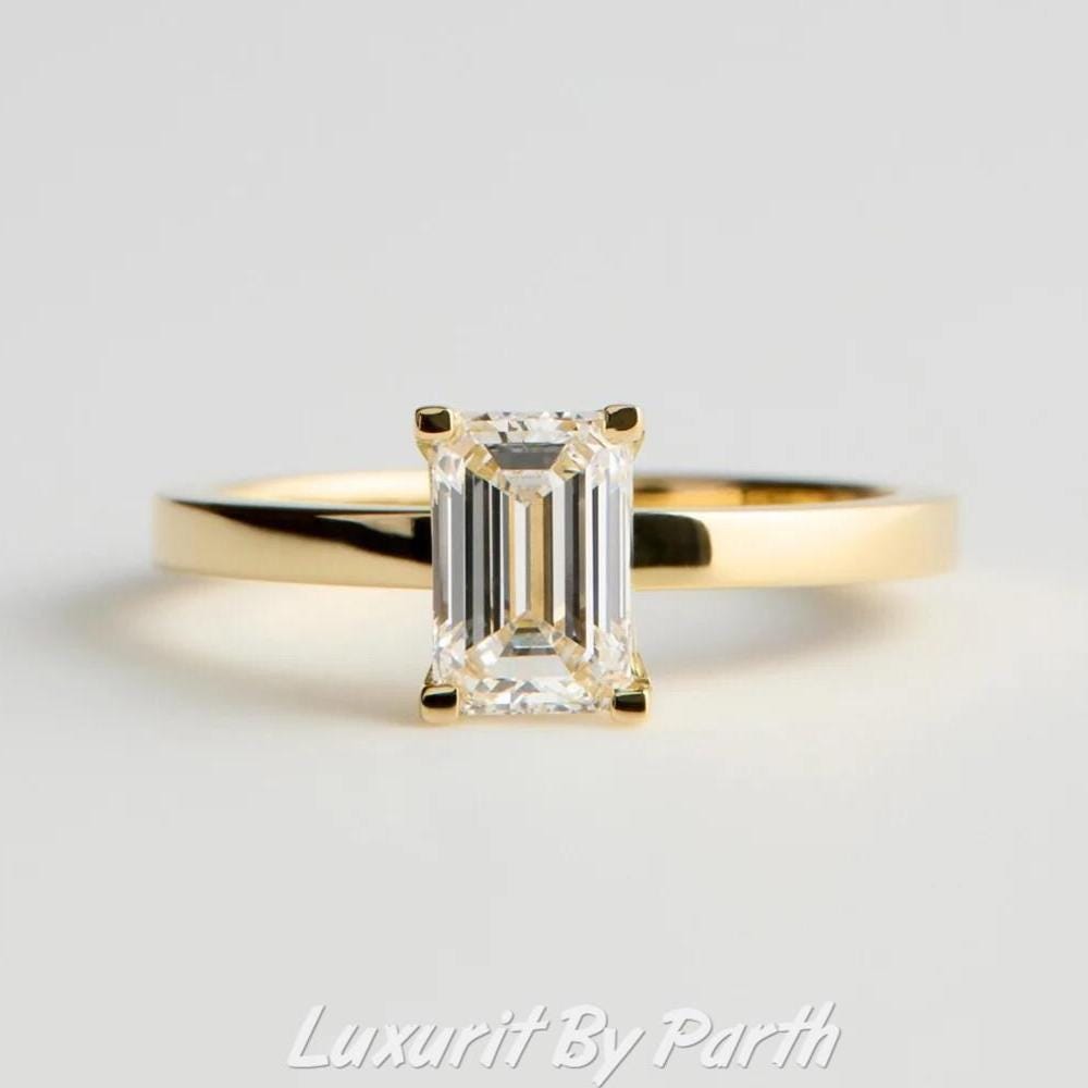 Emerald Ring, Gold Engagement, Diamond Solitaire, Minimalist Ring, Emerald Cut Ring, Gold Wedding Band, Proposal Ring, Promise Ring, Classic Ring, Engagement Gift, Gift For Her.