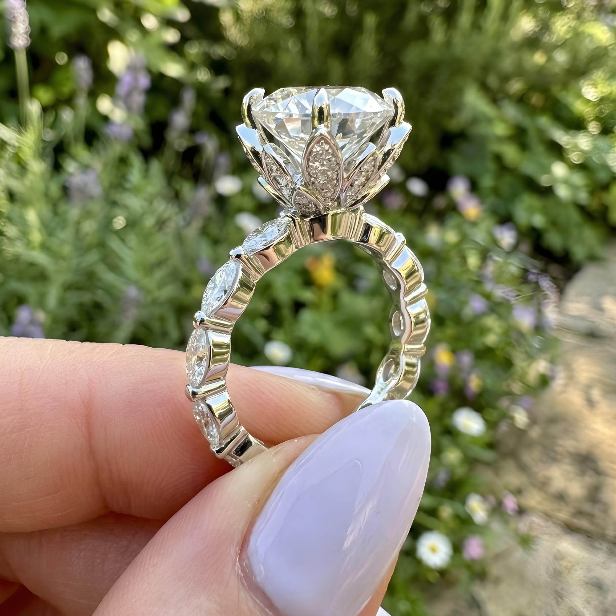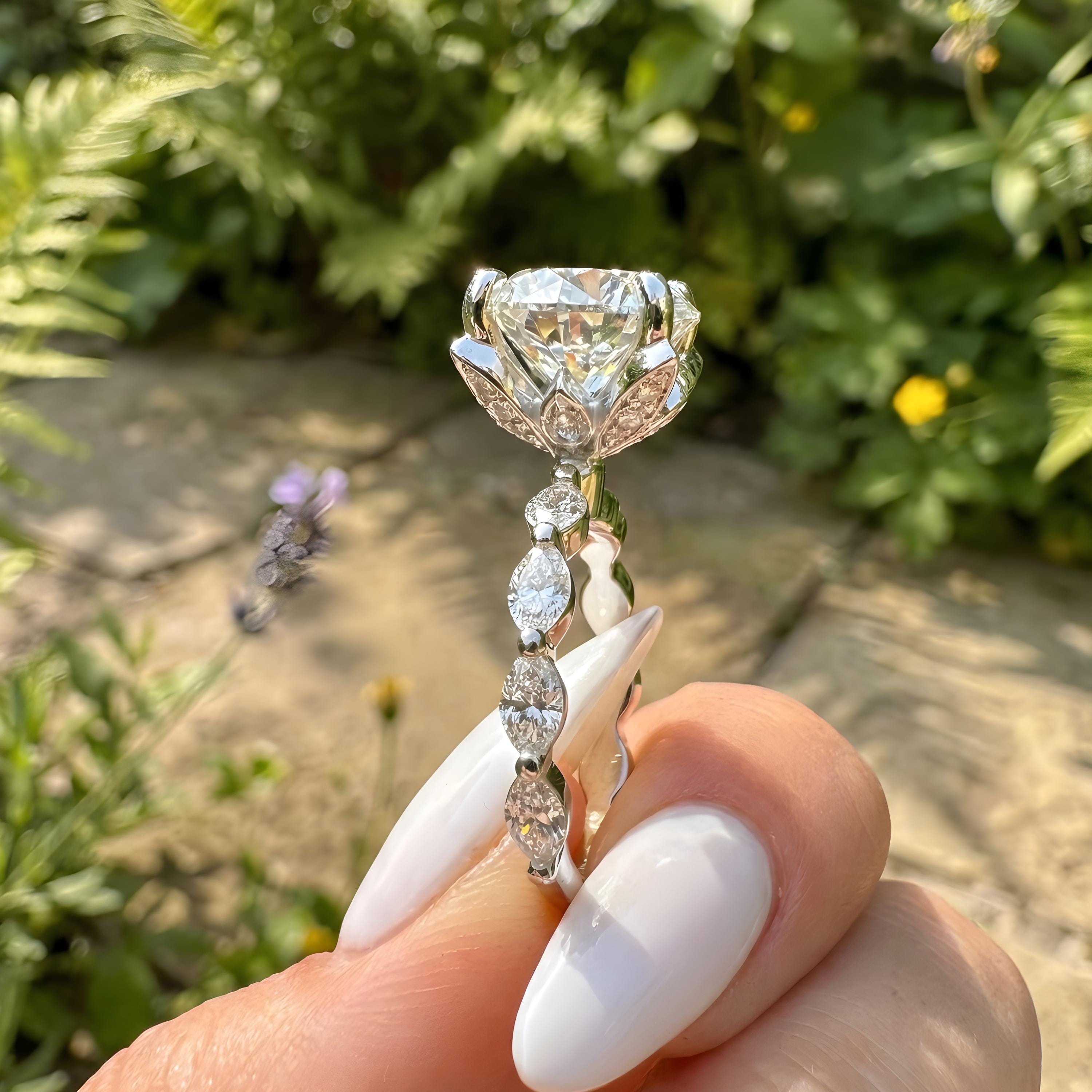 Yes, we work with lab-grown diamonds, including both CVD and HPHT diamonds. All items featured in our store can be created using lab-grown diamonds upon request. Feel free to message us on Etsy for further details and pricing.